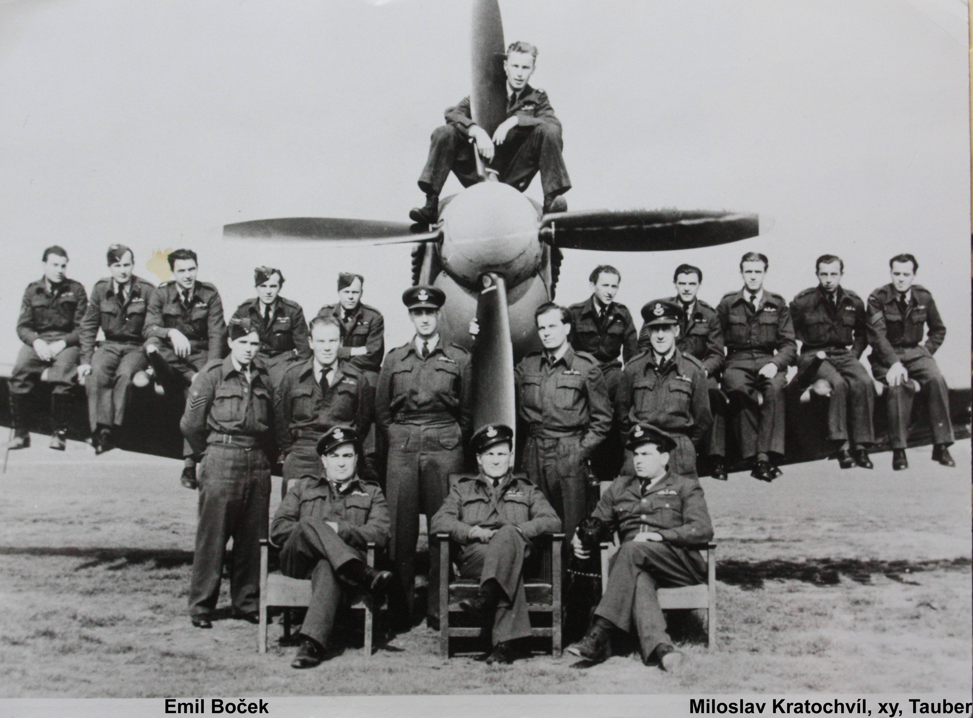 • „Nakonec jsme sloužili v Manstonu. To bylo hodně veliké letiště. Tam jsme skončili válku a teď se čekalo, že pojedeme domů. Bohužel, Sověti nás tady nechtěli, protože jsme byli západní ‚imperialisté‘. Tak to trvalo až do 13. srpna 1945, než jsme mohli přiletět do naší vlasti. My jsme z Anglie odletěli myslím 6. srpna. Přistáli jsme pod Hannoverem asi 29 kilometrů, v Hildesheimu, letělo nás 54 spitfirů. Tam jsme měli jen doplnit palivo a pokračovat do Československa. Bohužel, počasí to nedovolilo, padla mlha a pršelo. Takže jsme tam strávili celý týden, než jsme mohli odletět zpátky do republiky. Sověti nám zakázali letět přes svoji zónu, tak jsme museli letět na jih, přes Plzeň do Prahy. V Praze jsme přistáli 13. 8. na ruzyňském letišti. Delegace nás přivítala, generál Boček, ještě nějaký ruský generál, nevím kdo ještě. Postavili jsme spitfiry do řady. Měli jsme nástup. Generál Boček se s každým pilotem přivítal. Když přišel ke mně, tak já jsem se mu hlásil jako Boček, on říká, jestli nejsme rodina. Já na to: ‚Pane generále, to já nevím.‘“