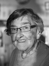 • „Asi o desíti hodinách k nám přišli partyzáni, ať okamžitě opustíme hájenku, že nás budou odstřelovat. No takže o desíti hodinách jsme se vzbudili, ještě že rodiče teda to tam měli nachystaný trošku. Měli takový, zkrátka tatínek tam vykopal díru takovou, že se tam schovají. Naházel tam nějaké větve a tak dále, jenže začínalo už jaro a tam začala téct voda. Takže tam bylo asi pět centimetrů vody, takže to bylo dost těžký pro rodiče. Ale o desíti hodinách, co mohli dělat, že? No a ve dvanáct hodin na hájenku odstřelovali Rusi kaťušama a padlo jich tam třináct. A to teda byly opravdu díry, no takový možná tři čtvrtě toho pokoje, díry, třináct, ale bylo to tak, jako kdyby nás Pánbůh zkrátka opatroval. Před barákem jedna díra vedle druhé a bylo to pět metrů od hájenky. Takže ani popraskaný jsme to neměli a nic.“