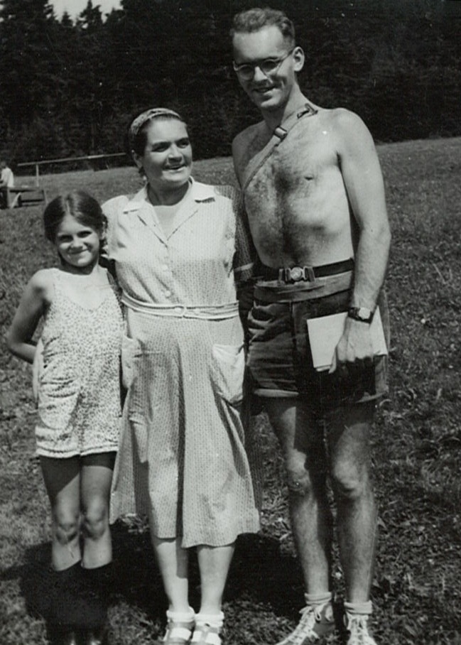 Zleva Růžena Hajnová, její teta Jirka Košťálková, maminka Růžena, strýc Jaroslav Košťálek – týden před zatčením na základě křivého obvinění tzv. desítkářky, později bez důkazů odsouzen do uranových dolů, v kočárku jeho syn, bratranec Růženy Hajnové, Jaroslav Košťálek ml.