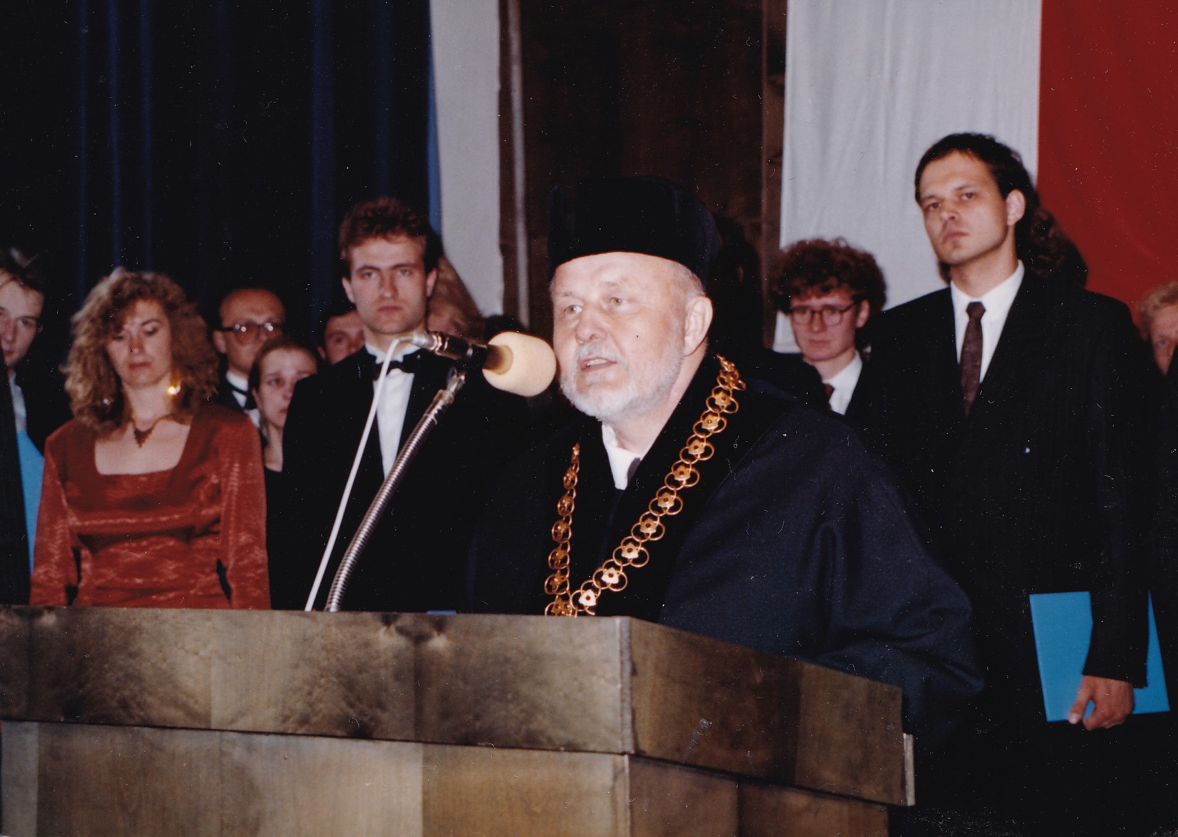 „Začali jsme stávkovat od 20. listopadu od rána. Ten byl takový stěžejní i v Brně, protože v Brně byly připravené pohotovostní pluky, že demonstranty zmlátí. Tehdy brněnský pan primátor tomu zabránil. Já si to dobře pamatuji, byl jsem na okraji demonstrace na Svoboďáku. Viděl jsem, jak esenbáci z pohotovostního pluku byli naštvaní, že nás nemůžou zmlátit, jak tam devastovali jejich autobus pendreky, naštvaní, že primátor jim to znemožnil. Předtím, kdy oni čekali, že vyběhnou, že nás zmlátí, ten strach se dal krájet. Byl vedle mě kamarád, spolužák, který nedokázal mluvit. On ze sebe vyrážel jen skřeky, to dokáže strach. Ten první den jsem šel na záchod a najednou si říkám: ‚To se tak rozjelo, že mě tady zavřou hned na začátku. To bude strašné, skončím se školou, kdo ví, jestli budu moct někde pracovat.‘ Něco mi tak říkalo: ‚Hele, z toho záchodu běž pryč a už se nevracej na fakultu.‘ Ale překonal jsem to a vrátil jsem se, už kvůli mé rodině, už kvůli těm studentům, s kterými jsem to začal. Chci vám říct, to je takové mé poznání, že statečnost je o překonání strachu.“
