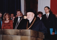 „No ne, to je k neuvěření, tohle je opravdu k neuvěření. Co říct, já jsem si říkal, vždyť to je strašný, oni nám pořád říkali studenti, jo, studenti, pořád jsme byli studenti, nám bylo skoro padesát let a my jsme byli studenti, jo, až nás to štvalo. Ale nejhorší je to, že když jsem třeba někde řekl, že mám soud, tak lidi to nebrali moc pozitivně. Jo, to nebylo pozitivní. Bylo to opravdu na nervy, bylo to takové, prostě jako kdybych něco udělal. Není to normální. Ta společnost hrozně těžko bojovala sama se sebou, dodneška má problém vyrovnat se s tou revolucí, dodneška se neumíme vyrovnat ani s tím komunismem, dodneška se neumíme vyrovnat pomalu s Protektorátem Čechy a Morava, jako s tou mnichovskou zradou a tak dále.“