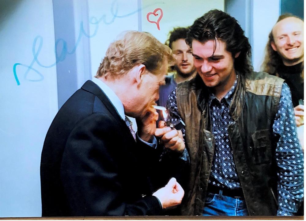 • „No a tam, jednoho krásného dne, kdy už byl zvolen náš pan prezident Václav Havel, tak vlastně tam jako dramatik, jako milec divadla, tak se přišel podívat na ten fenomén. A myslím si, že byl tak okouzlen, nebo že tak pochopil, co se podařilo udělat tady za to dílko, že vlastně poté přišel opravdu jako prezident v tom obleku, s těma gorilama všema, tak přišel nahoru do šatny a chtěl nám poděkovat. A protože byl taky divadelník, tak tam okamžitě padly nějaký bariéry. Samozřejmě jsme mu říkali pane prezidente. A on s tím svým úžasným ráčkováním nám poblahopřál a byla tam diskuse, na chodbě, v té šatně. A v jisté chvíli, on byl silný kuřák, kouřil cigarety značky Winston, chtěl si zapálit. Dal si takový ten pohyb, kdy si dáte tu cigaretu do úst, a teď bylo takový, kurník, kde mám ty sirky? A v ten moment před těma jeho ústy přistála moje ruka, protože já, jak jsme tam stáli, tak jsem stál před ním a měl jsem v ruce svoje zipo. Takhle jsem stál, měl jsem ten zapalovač, jak kdybych na to měl být připravený. A z toho samozřejmě ti novináři, kteří se tam navrch taky nahrnuli, tak udělali tuhletu slavnou fotografii, kdy jsem jako mladý jinoch připaloval našemu panu prezidentovi.“