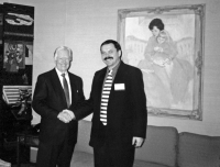 „Na přelomu roku 1976 a v březnu 1976 jsme pro KGB zorganizovali takovou, jak se ukázalo, už poslední akci vzdoru na rozloučenou. Ačkoli to byl Ševčenkovský večer, dobře jsme chápali, že v Kyjevské filharmonii, kam jsme šli…, že rok 1976 je čas takového běsnění brežněvismu, že tam nic ukrajinského nebude. Ale šli jsme. Sál filharmonie byl plný, protože lidé také byli žízniví po něčem takovém. Večer začíná vystoupením Mykoly Šamota, to byl takový… Ukrajinec, ale taková prodejná kůže, literární kritik, jak říkali. A on vystupuje s přednáškou o Ševčenkovi, ale ve skutečnosti to byl referát o Leninovi, jak si Lenin vážil Ševčenka, jak dokonce šel na Ševčenkův večer v Krakově, ačkoli tento večer měl nacionalistický nádech, a tak dále a v takovém stylu. Potom začíná koncert, jaký měl velmi zajímavé pravidlo: ani jedna báseň nebo píseň na Ševčenkova slova v ukrajinském jazyce. Pokud jsou písně v ukrajinštině, tak jedině lidové, a pokud zní Ševčenko, tak v ruštině z Ševčenkova ‚Deníku‘, protože ten napsal rusky. Takže četli citáty, ale rusky, protože tak je to psáno v originále. Pak začala přestávka, nebo jak to říct, pauza, a my jsme se s Mykolou domluvili, že jelikož víme, že to tak bude až do konce, uděláme demonstraci. Pak to tak opravdu bylo až do konce. Ke konci zazpívali nějakou jednu píseň, už nevím jakou, a lidé skandují ‚Tes-ta-ment, Tes-ta-ment‘. Načež oni ohlašují nějakou píseň o straně, což lidi definitivně šokuje, a to je vše. Koncert končí, a oni ukrajinsky oznamují: Koncert skončil, rozejděte se. Lidé začínají odcházet, a tehdy, jak jsme se domluvili, skáču na pódium, jdu k mikrofonu a říkám lidem ‚zastavte se‘ a začínám říkat přibližně toto: že jsme dnes na začátku od našeho lektora slyšeli, že Lenin si vážil Tarase Ševčenka, a přitom musíme mít na paměti, že Lenin miloval nejen Beethovenou ‚Appassionatu‘, ale také Ševčenkův ‚Testament‘. Pojďme tedy zazpívat Ševčenkův ‚Testament‘ [vesele]. Lidé se hned, viděl jsem první řady [smích], usmívají od ucha k uchu, všichni pochopili ten obrat, pokyvují hlavami – ano-ano-ano. Uprostřed jeviště stojí klavír, jdu k němu a chci zahrát první akord, abych zazpíval ‚Testament‘. Přibíhá ke mně žena a jen tak tiše syčí: Přestaňte, okamžitě! A obrací se k lidem: Koncert skončil! Koncert skončil! A mě přitom drží za ruce a nepouští, abych nemohl zahrát ten akord. No, nebudu bojovat se ženou na jevišti [smích], tak se zvedám, rozhazuji rukama, jako že už nemůžu nic dělat, a vtom na pódium vyskočí Mykola. Jde k mikrofonu a první, co řekl, je ‚Lidi, není vám hanba?‘ A celý sál, celý: ‚Hanba!‘ [smích]. To bylo vše. Tehdy nám došlo, že sál je náš. Seskakujeme z pódia, lidé nás obklopují a začínáme zpívat ‚Testament‘ a celý sál začíná zpívat s námi. Tamti běhají, křičí, ale není je slyšet. Pak začínají blikat světlem. My nereagujeme, zpíváme. Tehdy vypínají světlo úplně. A tím dělají strašnou psychologickou chybu, protože ‚Testament‘ v temném neosvětleném prostoru zpívaný hlasy celého sálu zní kolosálně. To byl takový zážitek, víte, zpívat ten hlasitý ‚Testament‘ a k tomu tma [usmívá se].“
