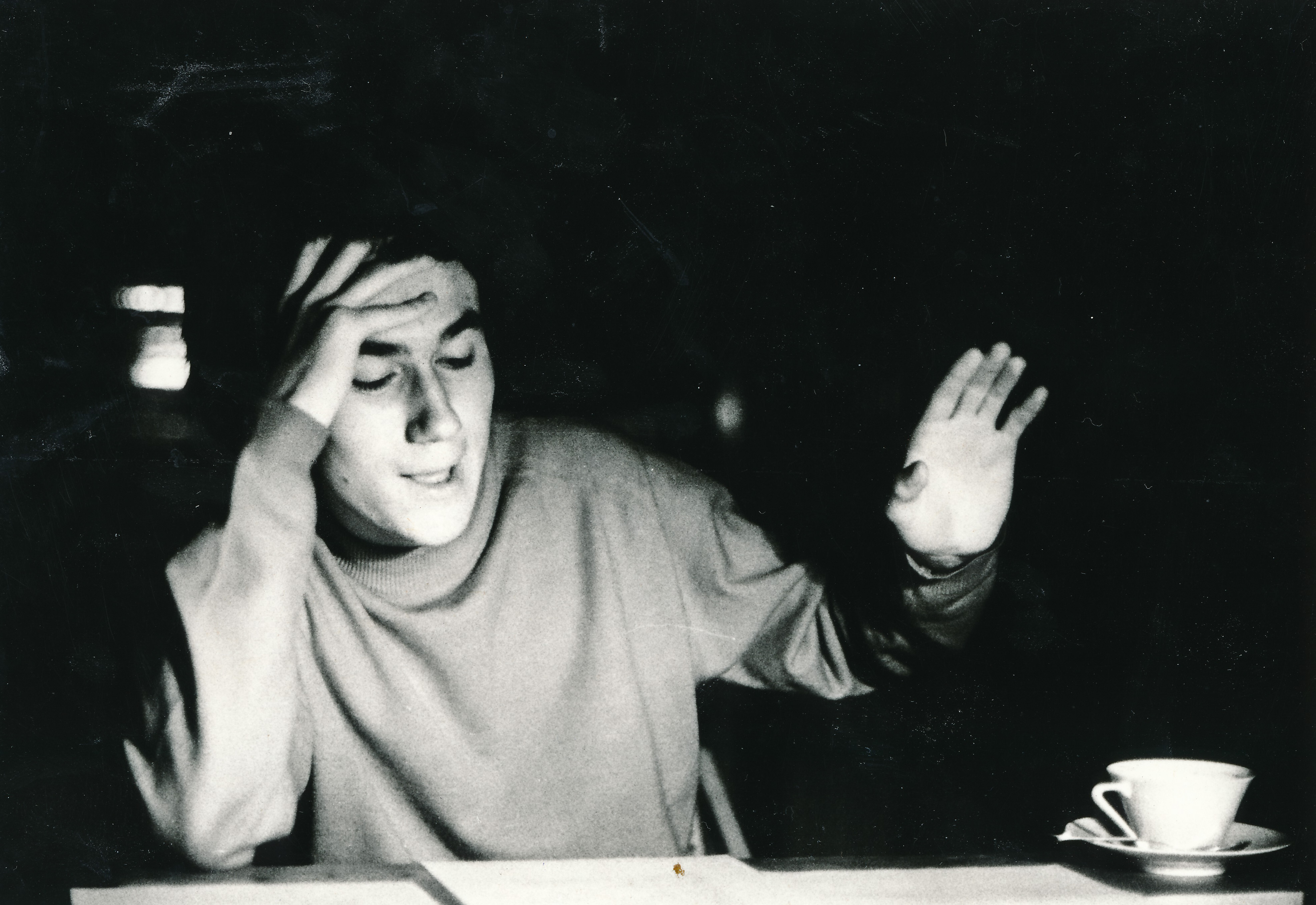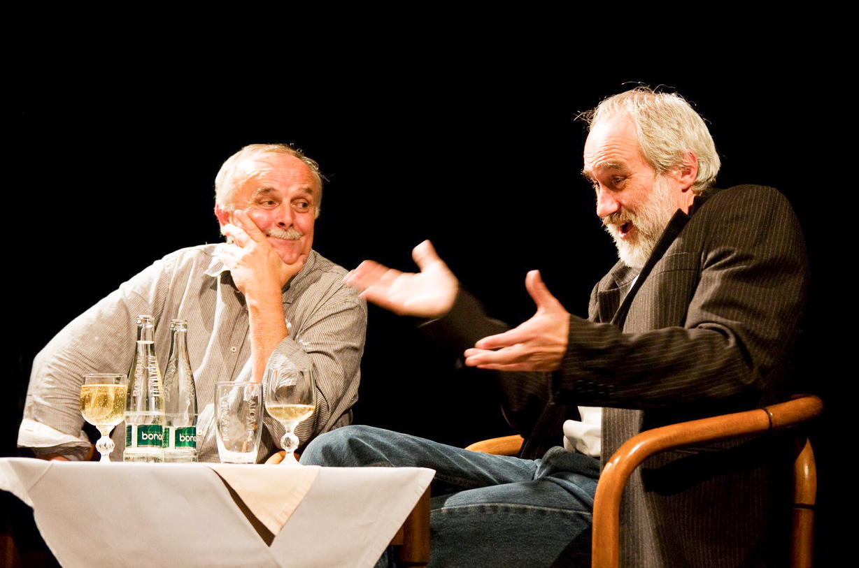 Přemysl Rut v pražském Studiu Paměť v době, kdy pod titulem Paměť pamětníkům začínaly písňové podvečery uváděné později na různých malých scénách pod názvem Okolostola. Tedy cca v roce 2009. Foto Bohdan Holomíček.