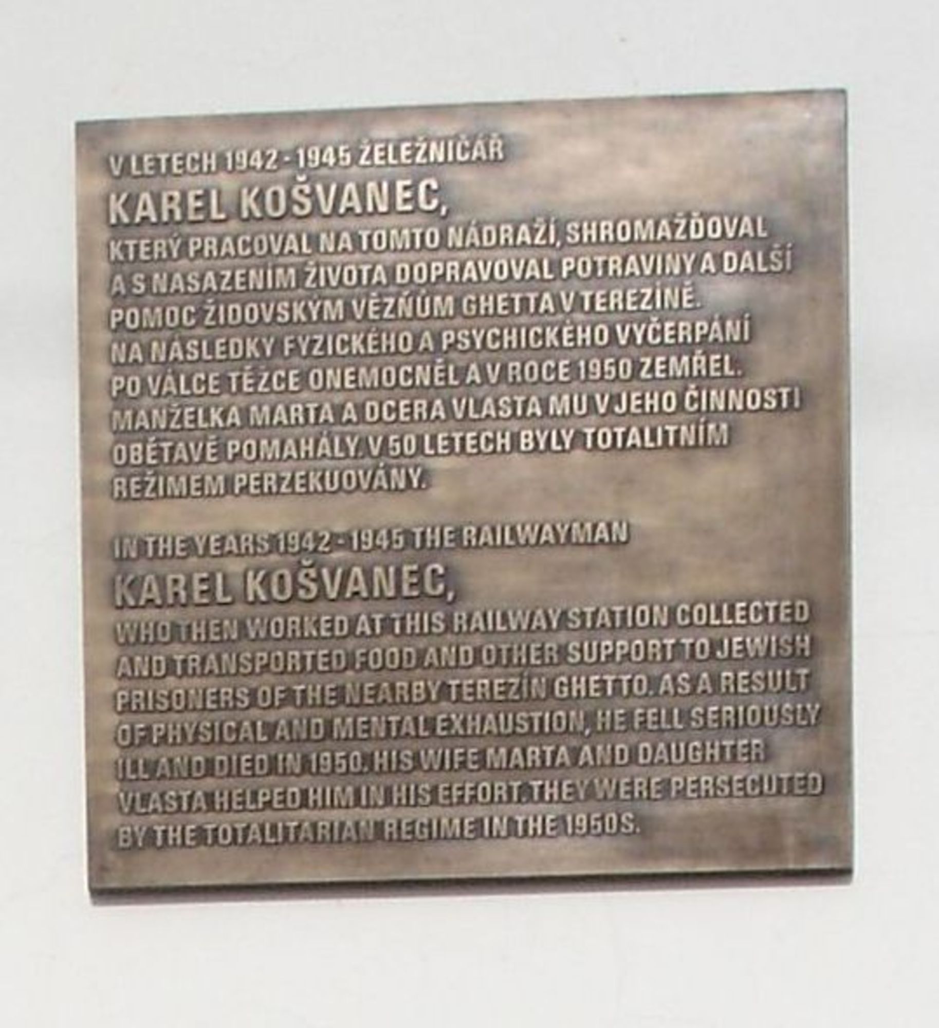 Vlasta Rypáčková, rozená Košvancová, se narodila roku 1931 v Nových Kopistech u Terezína jako nejstarší dcera manželům Martě a Karlovi Košvancovým. Otec, železničář z nádraží v blízkých Bohušovicích nad Ohří a přesvědčený komunista, se během války stal očitým svědkem deportací Židů do nacisty zřízeného ghetta Terezín. Rozhodl se jim aktivně pomáhat a po celou dobu existence ghetta i přes nesmírná rizika zásobil vězněné Židy potravinami, cigaretami a dalším zbožím. Tehdy dvanáctiletá Vlasta otci pomáhala při cestách k branám Terezína, vedle toho sama vozila zboží vlakem z Prahy. Ke konci války Košvancovi vybudovali u svého domku v Nových Kopistech podzemní úkryt. V bývalém prasečím chlívku dva měsíce ukrývali uprchlého vězně - jugoslávského důstojníka. Po válce čelila rodina obvinění z neoprávněného obohacování, tato podezření však byla vyvrácena díky svědectví zachráněných Židů (rodina Löblů, Eva Roubíčková a další). Útrapy spojené s častým nočním plížením do Terezína si však vybraly daň na otcově zdraví. Karel Košvanec zemřel 28. dubna roku 1950, den před Vlastinou svatbou. Rodina se v 50. letech přestěhovala do Liberce. Vlasta porodila dvě děti, pracovala jako úřednice v podniku TESLA. Roku 1957 matka Marta prodala několik cenností do státního podniku Klenoty. Pravděpodobně na základě udání souseda z Kopist byla celá rodina zatčena a obviněna z trestného činu spekulace. Zatímco Vlasta po třítýdenním pobytu ve vazbě vyvázla s podmínkou, matka Marta byla odsouzena k nepodmíněnému trestu a dva a půl roku strávila ve vězení ve slovenské Šaľe. Vedle toho byl rodině zabaven majetek a cennosti (dárky od zachráněných Židů) byly demonstrativně vystaveny coby důkaz, že rodina údajně žila „hýřivým životem“. Obvinění bylo v celém rozsahu zrušeno soudním rozhodnutím z roku 1994, za prožité útrapy a ztrátu majetku však nebyli Košvancovi nikdy odškodněni.