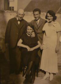 „Tak jsme přijeli do Osvětimi. ,Všechno nechte tady, všechno dostanete na ubytovně, nic si neberte s sebou!‘ A teď jsme šli, ženy vlevo, muži vpravo. Stál tam takový drobný vojáček, ukazoval sem, ukazoval tam, prohlédl si mě, mám jít tam... Pak tam byla sestra, která byla jako ošetřovatelka u mého manžela v ordinaci. Ta mi řekla: ,Já jsem viděla pana doktora, on mu tam něco vykládal...‘ On neuměl německy totiž, Třeboňák, no. Vykládal, že má tady něco na ruce. Jako kluk měl z fotbalu narušený loket, ale vůbec mu to nevadilo. Kdyby řekl ,Ich bin Arzt‘, tak prošel. A on mu tam začal něco vykládat... Já jsem se pak jedné Polky ptala: ,Když můj muž šel tam na druhou stranu...?‘ ,Tak ti kouří támhle z komína, můžeš ho dejchat.‘ Tak skončil, no, tím se sám odsoudil, on to nevěděl.