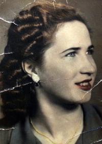„Přišli Němci, posadili nás na židli za stůl, mířili na nás zbraněmi a chtěli vědět, kde jsou rodiče. Řekli jsme, že nevíme, a opravdu jsme nevěděly, kam rodiče šli. A Němci měli takové rukavice, těsné na ruce, k lokti rozšířené, tlusté, takový silný materiál, jako na motorku… Táta takové měl, když měl motorku. Těmi rukavicemi nás praštili přes pusu, obě dvě. Sestře se spustila krev a ona se hned rozplakala. A mně ten Němec ukázal prstem, že mám jít na půdu. Já jsem si myslela, že mě tam jde zastřelit, protože šel s puškou za mnou, za děckem… Já jsem tedy vylezla nahoru a říkala jsem si: ,Ježišmarjá, on mě tam asi zabije!' Ale jen si to tam prohlédnul a ukázal zase do sklepa, tak jsem si říkala: ,Nezabil mě na půdě, tak mě zabije ve sklepě.' No, nezabil mě, ale až když jsem se vdala, tak jsem se dozvěděla od svého muže, že jsem pro něj byla jen krycí manévr, aby se mohl schovat, kdyby tam někdo byl. Pak jsem už dobře spala. Do té doby jsem se v noci budila.“