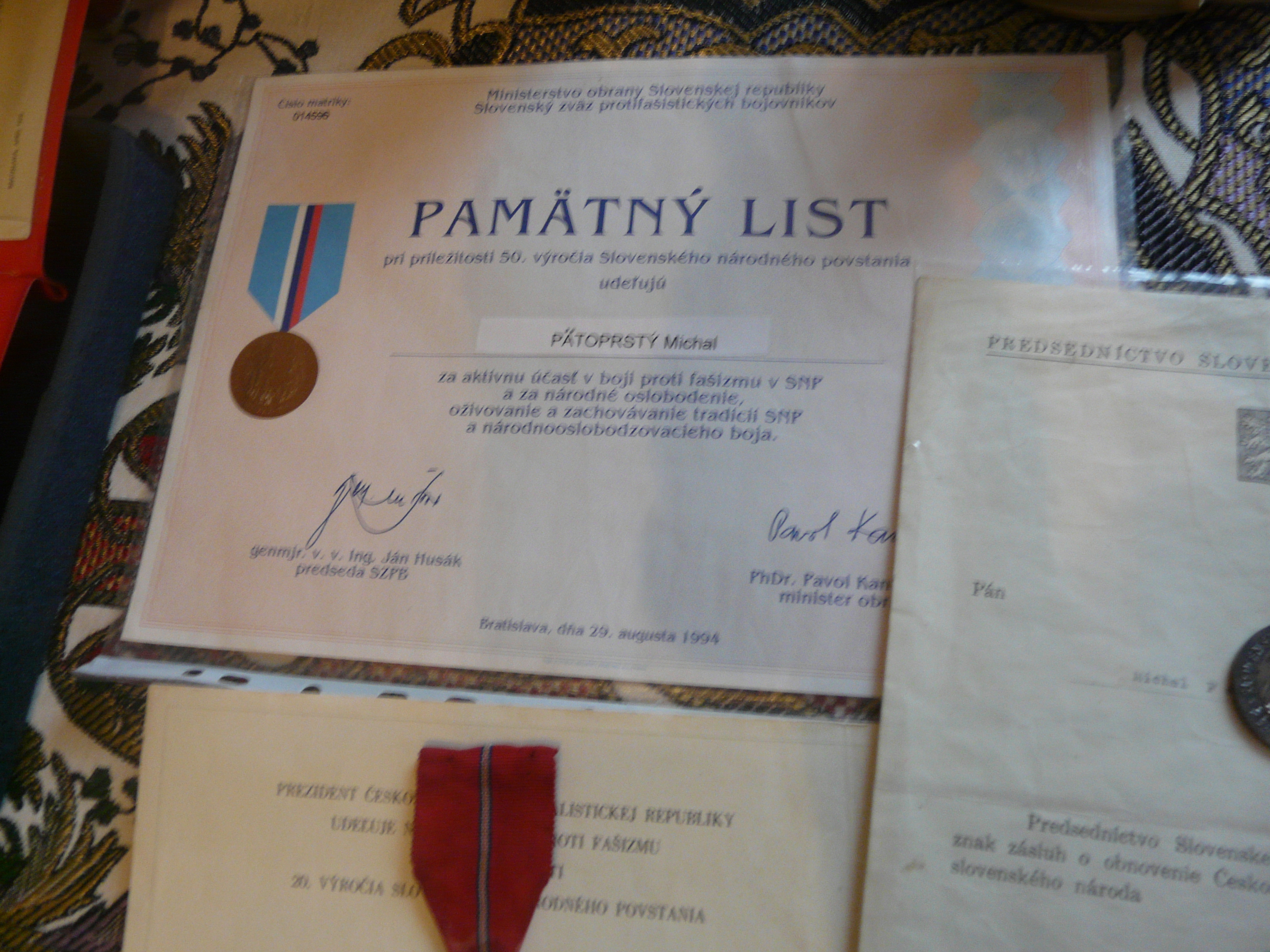 „Musel udat den, polohu, kde zapálí v noci tři ohýnky, samozřejmě, aby to Němci neviděli. Bylo to Bratislava, Pezinok, Viničné, Senec a maďarské hranice, tam byl listnatý les, tam to můj táta dobře znal. V lese zapálil ty tři ohýnky, přiletělo ruské letadlo a pustilo toho ruského parašutistu s vysílačkou. Radista skočil s padákem a byl to Slovák Jozef Maco. Zakopali padák a můj táta měl ve Viničném švagra a švagrovou, tak u nich ho ubytoval. Tam byla moje sestřenka, můj bratránek, tak tam ho ubytovali, protože strýček byl švec, že kdyby náhodou neměl ten radista ještě vyťukané ty zprávy a někdo by přišel, tak ten strýček ťukal ty boty, jakože švec, a zachraňoval situaci.“