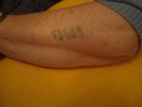 „Tam nás strčili pod sprchy a potom nám oděli nějaké hadry. Všechno nám vzali, kufry a všechno, to jsme šli s rukama, nic. Tam nás převlékli do nějakých pruhovaných hadrů a třeba i kabát jsem dostala. Ten měl jeden rukáv černý a kabát byl celý béžový. Aby člověk nemohl utéct, tak nás takhle vymustrovali. Nakonec nás zavedli do místnosti, kde nás jednoho po druhém tetovali.“