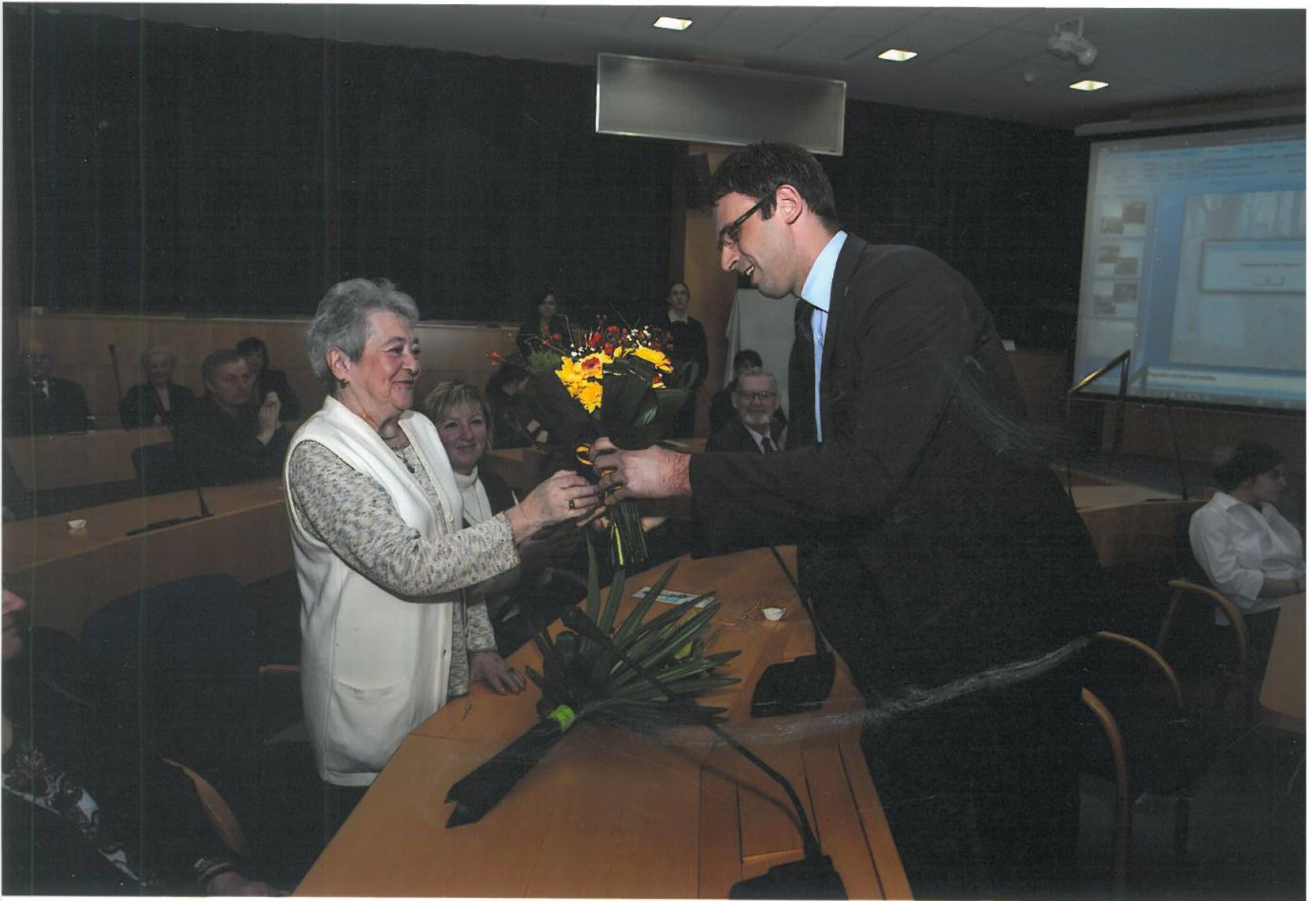 „To jsme jeli dobytčáky už z Terezína. Narvali nás do dobytčích vagonů, v jednom koutě byl kbelík na potřebu a jinak nic. Jeli jsme ve dne a celý den a celou noc, myslím, vlak najednou ráno zastavil, v tom šeru esesáci otevřeli vrata od dobytčáku a začali řvát, psi štěkali jako šílení a teď všechno ven, řvali: ‚Los, los, alles raus!‘ My byli jak v Jiříkově vidění. My jsme nevěděli, co se děje. Pak nás hned na nádraží, na tom osvětimském, rozdělili, muži zvlášť, ženy zvlášť, a já už byla naštěstí počítaná jako žena. Takže jsme šly s tou mamkou.“