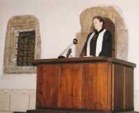 „Takhle, já jsem byla dítě farářské, takže já jsem to měla svým způsobem snazší. Sice jsem byla označená, měla jsem cejch, ale děti obyčejných věřících, které do toho kostela chodily normálně, tak to měly daleko těžší a bylo jim naprosto jednoznačně vyhrožováno, že pokud nepřestanou, tak se nedostanou na školu. A taky to nebylo jenom vyhrožování, to byly fakta. Takhle to dopadalo. Prostě to děcko, i kdyby bylo já nevím jaký, tak se dostalo leda na učení, což není nic špatného, ale když měl někdo touhu po vzdělání a byl nadaný, tak oni mu to opravdu zkazili.“