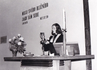 „Ale naši dělali příměstské tábory, i když se tomu tak tehdy ještě neříkalo. Za farou se postavily stany a tam byly děti z Machova a od nás z Broumova i okolních vsí. Týden jsme tam přebývali. Ráno byla rozcvička, pak všelijaké soutěžení, oběd, což maminka navařila na faře, pak nějaká biblická půlhodinka. Pak zase soutěže a sportování a všechno, to šlo dělat na té zahradě a v parku, byl tam i krásný altánek. Vyřádili jsme se tam a děcka to milovala. Dodnes jsme si blízcí z toho času, když se potkáme, už máme bílé vlasy, ale to dětské srdce tam někde zůstalo z těch hezkých časů. Dětské srdce, které si je na blízku.“