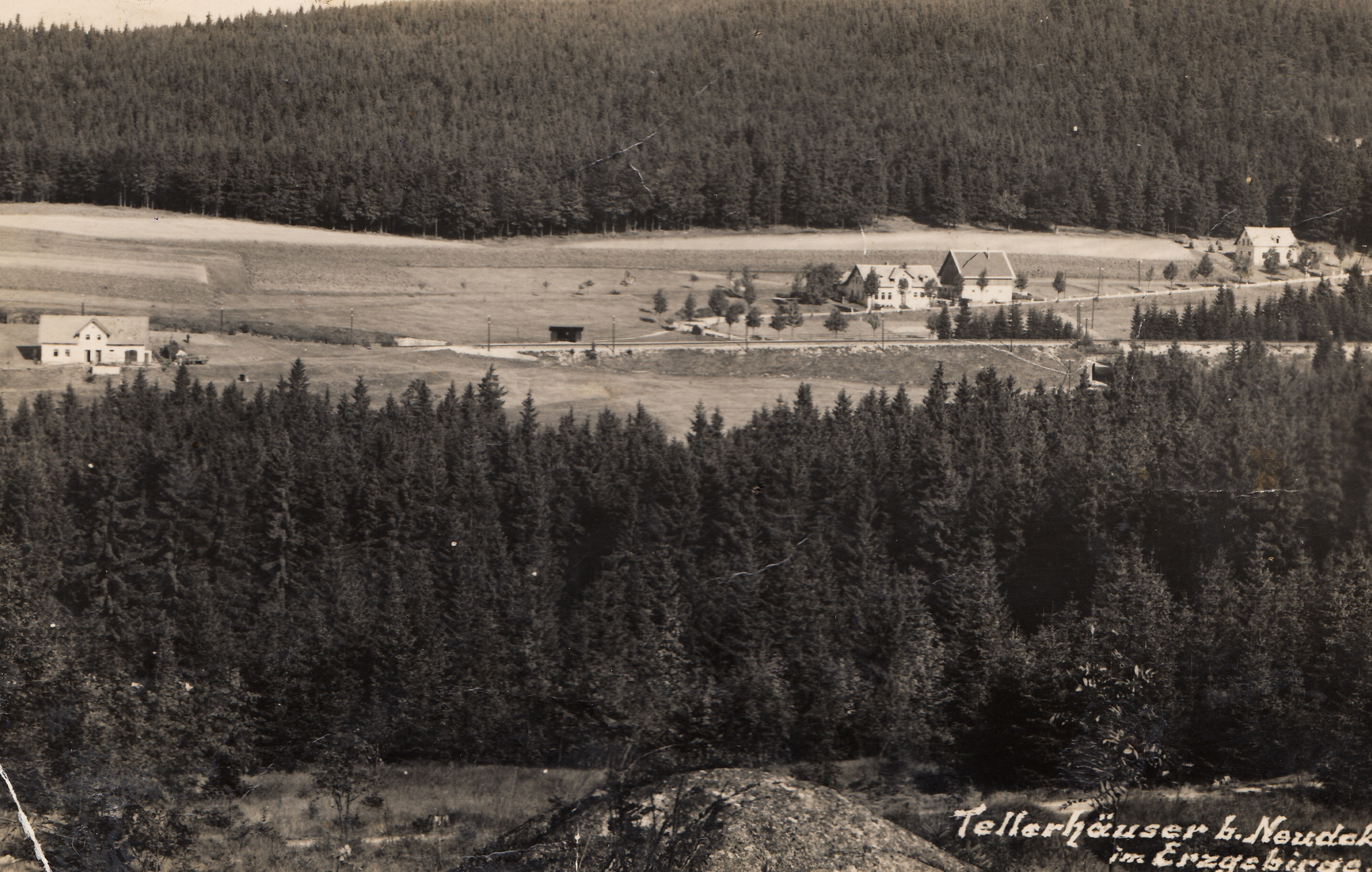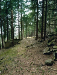 Ich habe meinen Rucksack gepackt, Wanderschuhe angezogen, bin nach Nejdek gefahren. Bin spät nachmittags angekommen, bin auf den Marktplatz gegangen und habe einen Mann gefragt, wo ich zur schönen Aussicht komme? Das ist ein Wirtshaus, so ein Tanzhaus auf halber Höhe nach (..) rauf. Da hat er mir das erklärt, ich bin da rauf, ich wusste nicht ob ich da übernachten kann. Ich bin Alpinist ich finde mich überall zurecht, auch nachts im Freien. Und ich habe ein Zimmer bekommen. Am nächsten Tag bin ich zum Tellerberg gegangen, irgendwie habe ich mich durchgeschlagen durch den Wald. Später habe ich gewusst, dass die früher auf der Bahnlinie gelaufen sind, das habe ich dann auch Mal gemacht. Wenn ein Zug kommt muss man halt runtergehen, aber der hubt vorher. Ich wusste ungefähr wo dieses Haus stand, knapp unterhalb der Bahnlilie. Und es ist ein dichter Wald. Die Tschechen haben über diese Wüstungen Wald gepflanzt, eben um die Erinnerung auszulöschen. Es sind elf Wüstungen dieser Art im Bezirk Nejdek. Und es sind insgesamt 1100 solcher Wüstungen im Sudetenland die ausgelöscht worden sind.