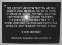 A memorial plaque to those unjustly sentenced by Chotěboř court was unveiled in February 2007 in Chotěboř. The imprisoned comprehensive students met during the event. Jiří Boháč in a tie is on the left together with Jan Křívský, Antonín Gigal, Josef Stuna, Milan Hájek and in the back Mrs. Dvořáková, the wife of late Josef Dvořák who initiated the leaflet action