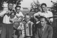 The group of musicians would sometimes play during harvest festival or other festivals. Besides Jiří Boháč (with guitar on the right), his older brother Josef (with violin on the left) also played with him