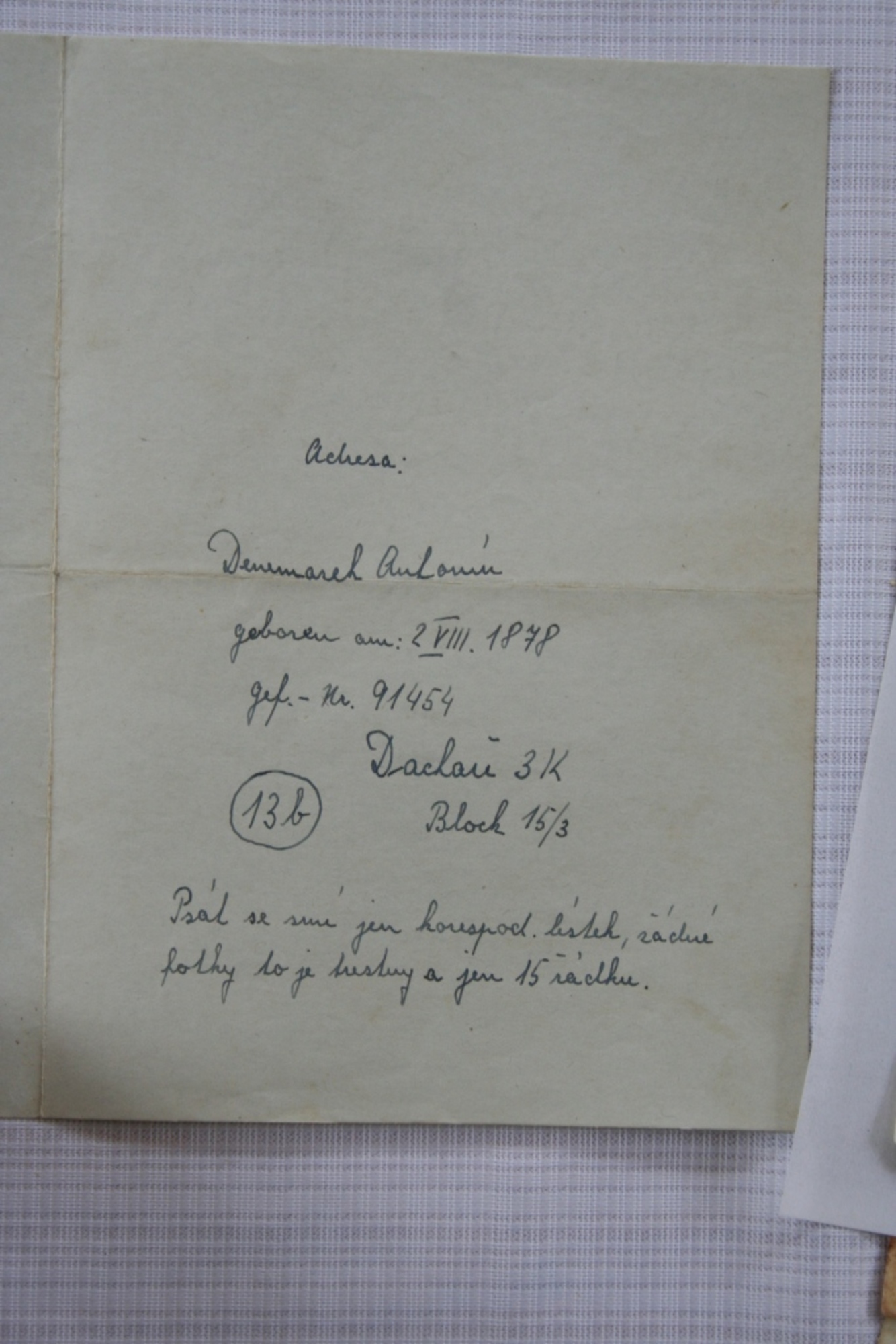 Alois Denemarek was born in Dolní Vilémovice in the Bohemian-Moravian Highlands on June 21st, 1917. He grew up together with four siblings in a farming family. He joined the Army in 1937. He got to the dragoons in Pardubice after being in Jihlava and Hradec Králové. His commander was the parachutist-to-be Alfréd Bartoš. His compatriot and friend Jan Kubiš, whom he kept in touch with during and afte the war, persuaded him to emigrate after the occupation. Later on he kept in touch with Kubiš around the assassination. The Denemarek family hid parachutist Pospíšil in their house. Both the parents and the brother of Alois Denemarek were arrested after the betrayal and they died in concentration camps. Alois Denemarek escaped his fate - shortly before that he got married and moved with his wife to another village. They confiscated his farm after the war and the arrival of Communism. He was arrested and worked in the glassworks. He worked in the PTP (Auxiliary Technical Troops) for 18 months. Then he worked in the vineyard in Znojmo.