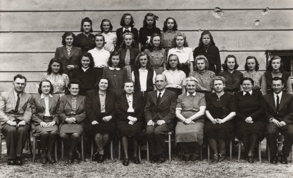 Group photo of the final year students of the Komenium Primary School in Křížkovského Street in Olomouc; Eliška Melounová is second left in the top row