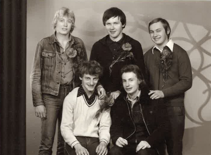 Pavel Hroznata Adamec se spolužáky z havlíčkobrodského gymnázia, 1982