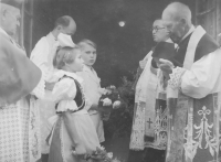Jarmila Pospíšilová was born on January 12, 1936 in Olšany in the Šumperk region as the eldest of three children to the parents Jan and Jarmila Valouch. The family owned a farm in the center of the village, which included 10 hectares of fields and 10 hectares of forest. In the autumn of 1943, the German authorities confiscated their farms and assigned German resettlers from somewhere in Romania. The parents then took them to a labor camp near Fürstenstein Castle (Ksiąz in Polish) within sight of Waldenburg (Wałbrzych in Polish). Their father‘s uncle, Fr. Jindřich Valouch, was responsible for their release. He collected the amount he used to pay for their release from the believers. In February 1944, the parents returned to visit their children. Until the end of the Second World War, they lived in the mountains in solitude Na Žampachu (Hostice). There were guerrillas in the local forests, which the family supplied with food. After the war, they returned to the farm in Olšany. Later, during collectivization, they steadfastly refused to join the unified agricultural cooperative (collective farm). Jarmila was expelled from flax school a year before graduating. In 1954, the parents locked them up in the National Committee building for a few hours and did not release them until after joining the cooperative, which they allegedly did as the last in the village. In February 1959, Jarmila married Jiří Pospíšil. In 1968, she and her husband and their four children moved to Ruda nad Moravou, where they lived in 2020. Jarmila Pospíšilová died in August 2022.