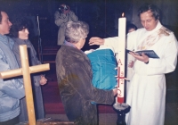 Karel Sádlo was born in Písek on 26 November 1952 into the family of farmer Karel Sádlo and his wife Alžběta Sádlová, née Kašparová. The family lived in Křižanov near Milevsko. In the 1950s, the family was forced to join a farming cooperative (JZD). The witness studied theology at the seminary in Litoměřice from 1971 and was in contact with major church officials. The State Security Service (StB) forced him to cooperate for 20 years but he refused. He quit his studies without graduation in 1977, joined the military‘s emergency regiment at the airport in Přerov, and attended residential seminars. One year later he married Marie Fojtová and they had six children. Following his service, he joined the Catholic Charity and then an air conditioning equipment manufacturer (ZVVZ) as a shipping foreman, where he worked until 1989. In 1990 he became a permanent deacon in Křižanov, expanding his activities to four parishes. He retired in 2015 but continued his deacon‘s service into 2024 while living in Křižanov.