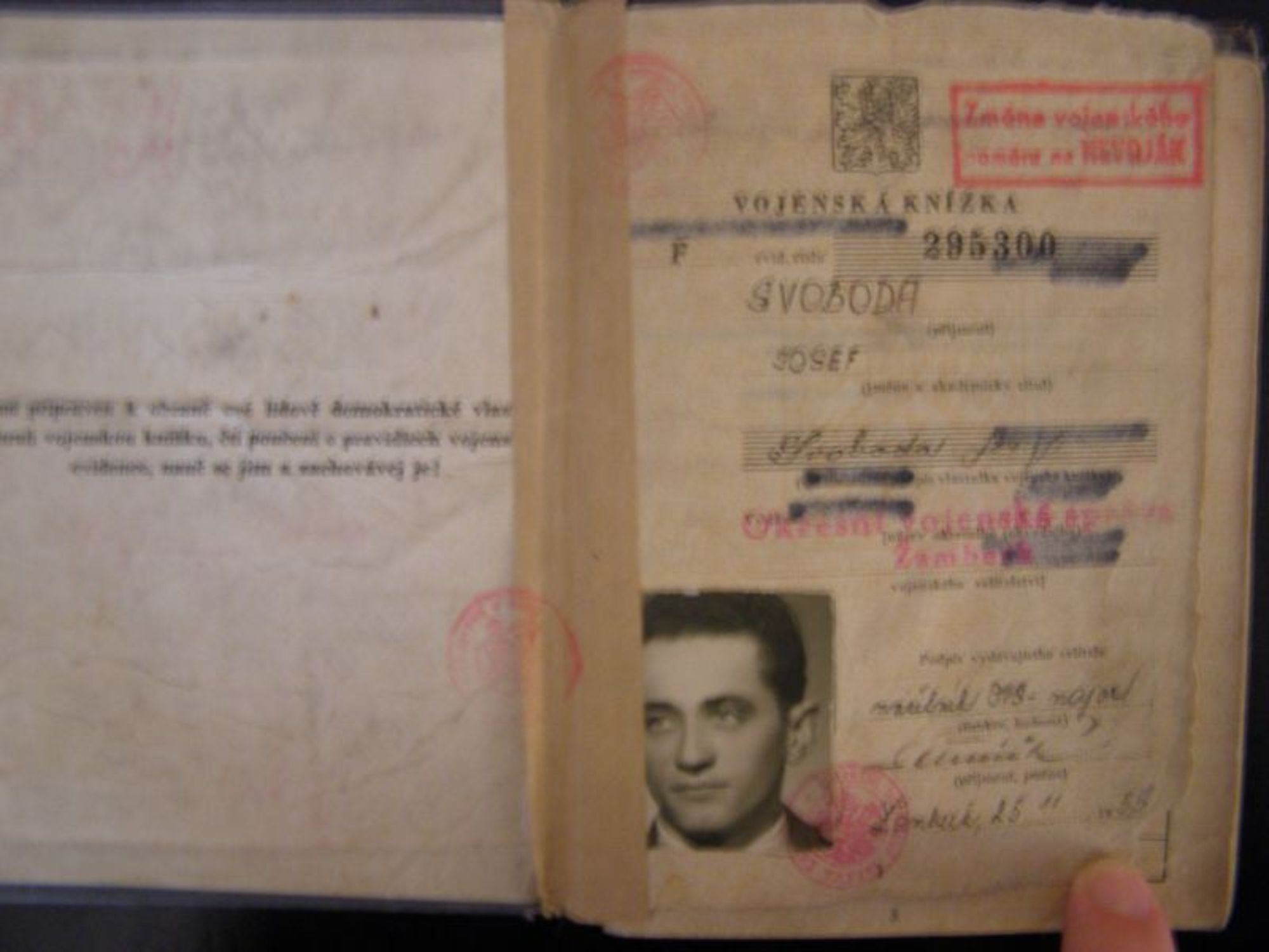 Josef Svoboda was born July 1st, 1932 in Pohůrka, near České Budějovice. He grew up in a very poor family. During the war, his elder brother Jiří was sent to forced labour in Germany. Due to a misunderstanding with his employer he was sent to a concentration camp. Till 1945 he went through three concentration camps - Flossenbürg, Gross Rosen and Sachsenhausen; after the liberation he joined the State Police. In 1945-1947 Josef Svoboda attended the last two grades of a higher elementary, then he began vocational training at a technical school of ceramics in Karlovy Vary. He was attracted to the military profession; his decision to join the army was also significantly supported by the model of his brother in uniform. He entered the military academy in Mladá Boleslav in 1949. From 1953-1954 he served in a fortress battalion supporting the border protection guards in Znojmo. In 1954, after a conflict with the chairman of a local Party organization, he was transferred to the Auxiliary Technical Battalions (or military technical units, which were gradually replacing the cancelled ATBs). Here he served as a first-lieutenant till 1955 when he had to transfer to the reserves for medical reasons. Afterwards, he worked as a roof tiller and in other professions. He is finally retired.