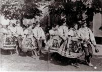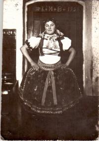 „V roce 1947 zemřel v květnu otec. Ten stejný rok přišel Joza Šuljera, jestli s ním nechci jít za stárkovou. Naše matka mu ale řekla, že mu to nemůže slíbit, protože otec zemřel. Ten rok měl málokdo víno. Byly kroupy a pomlátily to. My jsme ale měli dost, protože ho nikdo nepil. Babička mě poslala jít víno prodat, mezitím ale právě přišel Joza, jestli bych nemohla s ním jít za tu stárkovou. Matka že se musí zeptat babičky, že mu nemůže nic slíbit. Babička prý tehdy řekla: ´Jen ať jde, budeme mít smutek, ale budeme mít i radost.´ Tehdy nás bylo devět párů. Každému se musel naplnit litr vína, něco se vypilo před domem, muselo se i venku trochu pohostit, tak toho bylo dost.“