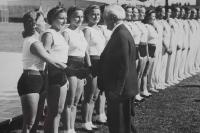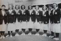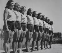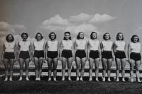 „Víte, potom už žádné (sportovní) akce vcelku nebyly. To byl smutek… vzhledem k tomu, že jsme byly sokolky, tak se každý bál nás pozvat. Bylo to velice smutné, když se to tak vezme. Ale my jsme si z toho nic nedělaly. Svoje jsme si odcvičily, odzávodily, vyhrály, medaile byla v kapse, tak co! Víte, v tom Sokole bylo prima to, že vždy vás ti starší vzali pod křídla. Samozřejmě, že cvičit nebyla jednoduchá věc. Vždy musel někdo dávat záchranu, vymýšlet sestavy a tak. Takže to bylo vždy prima, že jsme měly starší sestry, co o nás pečovaly.“