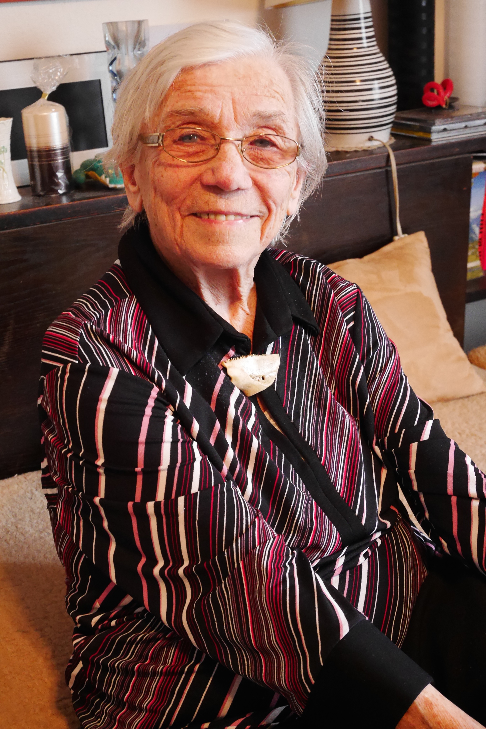 Tazatel: „Takže tam jste byly ubytovány na nějakém hotelu?“ – „St. Helen’s School, to byla škola, a protože byly prázdniny, tak to bylo prázdné. St. Helen’s School, dodnes si to pamatuji.“