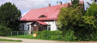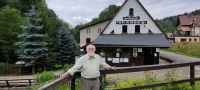 Bronisław Kamiński před skanzenem v Pstrążnej, který vznikl v Pstrążne v roce 1984. Podle pamětnic Pstrążnej vesnici pomohl přežít, protože do něj jezdí turisté z lázní Kudowa. Pan Kamiński ho pět let vedl (2005-2010)