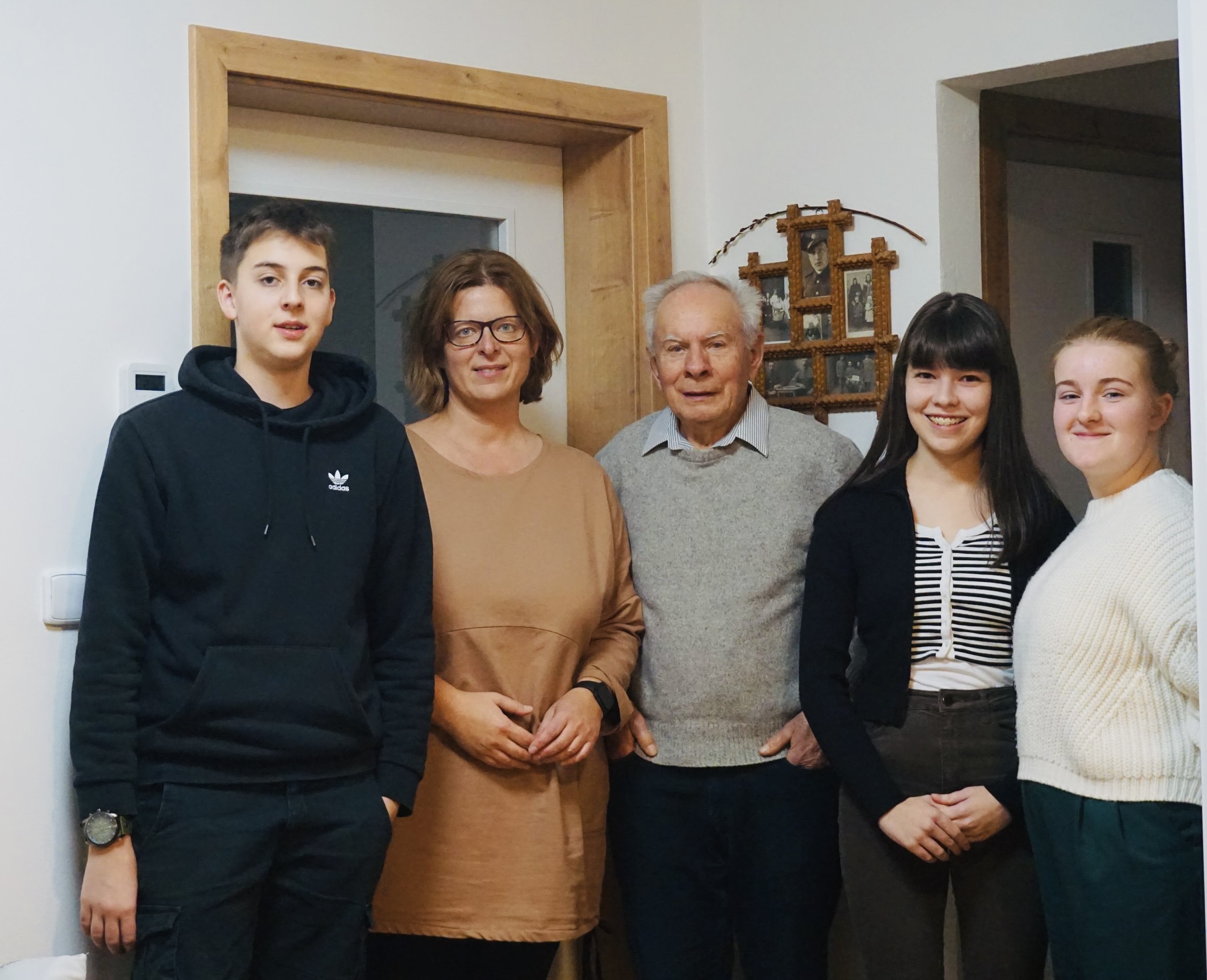 "Tak tam chlapi zmerčili dva Němce, kteří šli směrem k tomu našemu sklepu, a tak okamžitě jsme museli všichni do sklepa. Na dveře naházeli turkyni, jako trošku zamaskovat. A teď jsme čekali, co se děje, v blahé naději, že třeba ti Němci si nás nevšimli. Všimli si nás, a přestože věděli, že tam žádní vojáci nejsou, že jsou tam civilové, tak několikrát do toho sklepa vystřelili přes ty zavřené dveře. Sklepy jsou někdy dělané tak, že ta šíje je rovná. Ten sklep jde dále a někdy je prostě zkosená a pak je teprve rovná část, kde jsou sudy a takhle. Ti Němci si mysleli, že ten sklep je řešený tím, že je tam ta zkosená šije dolů, a když stříleli, tak stříleli šikmo dolů. Teta Pláteníková seděla přímo proti dveřím, měla v náručí Oldřicha a u nohou jí ležel pes, a ty kulky, jak tam ti Němci vystřelili, tak toho psa zabily. Bohužel, bohudík si neuvědomili, že kdyby stříleli o pět metrů nebo metr výš, tak to dopadlo zle. Nevím, proč to dělali, protože to bylo ani ne měsíc před koncem války a tady takovéhle oběti už by byly zbytečné."