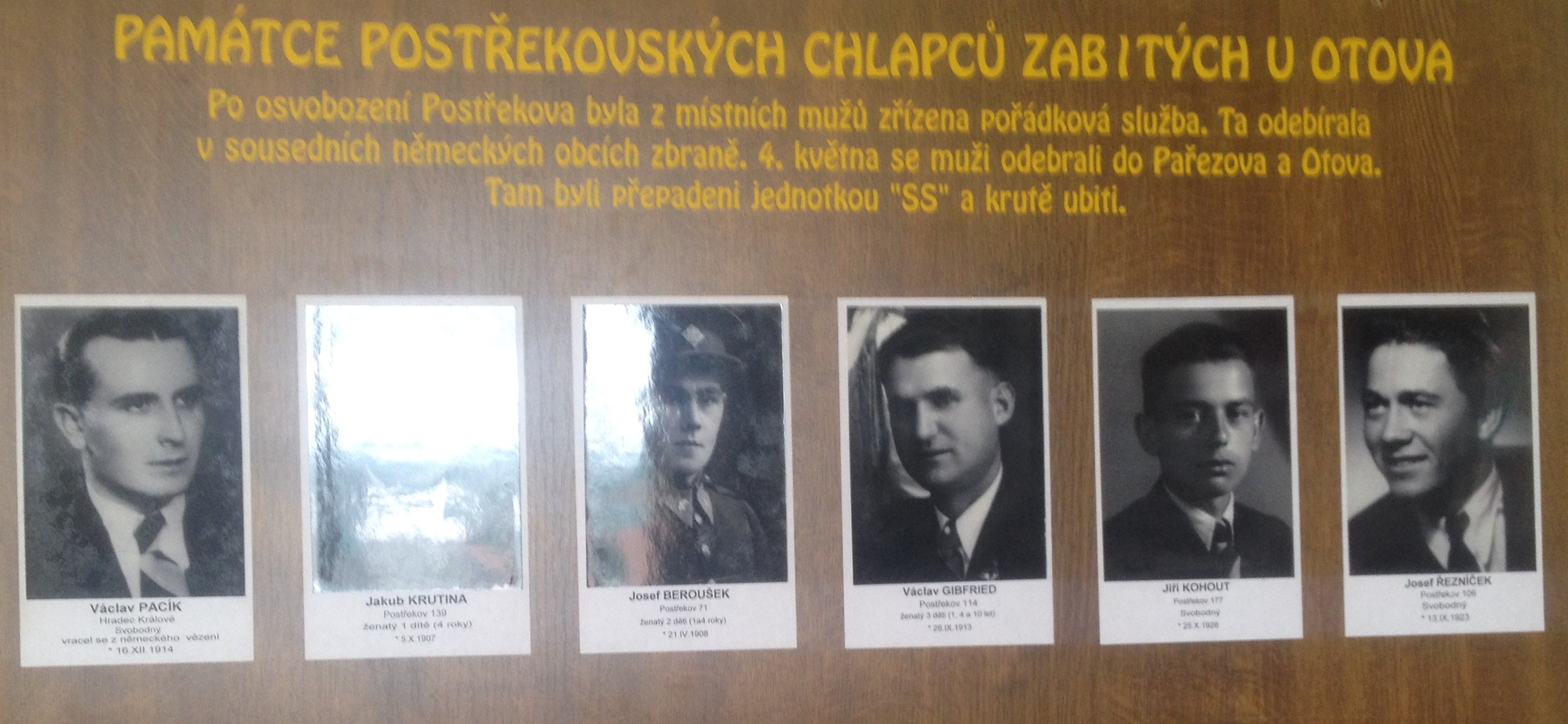 „Otec mne každý den vysílal na Díly do toho lesa, že už tam musí přijít Američani. Taky že jo. Prvního května, když jsem přiběhl na Díly, to je vesnice tady nad námi, tak tam skutečně Američani přicházeli. Se mnou tam bylo ještě spousta zvědavců z Postřekova. Jenže když se Američani blížili z Německa přes les na Díly, tak projížděli džípy, bojovými vozidly... první projelo a druhé najelo na zaminovaný most. Ten vyletěl do povětří a pět amerických vojáků bylo zabito. Americká jednotka tam čekala odpor. Tam ale už žádný Němci nebyli, ty se stáhli den předtím a tam je vítal starosta s děvčaty v chodských krojích, tak byli jako Američani překvapeni. Vítali je: ‚Jste v Československu.‘ No tak se domlouvali s nadřízenými složkami a říkali, dobře, dál nesmíme. Nakonec je ti postřekovští občané uprosili, aby ještě šli do Postřekova zajmout nebo zlikvidovat německé vojáky, kteří tam byli. Já jsem kolem nich chodil a věděl jsem, kde jsou, tak jsme je nakonec vedli, ty americké vojáky. Oni v Postřekově zajali ty německé vojáky, který ani už žádný odpor nekladli, už měli ruce vzhůru, už se prostě Američanům vzdávali...“