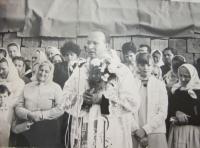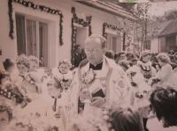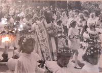 „Bylo to u nějaké stařenky, která tam měla kdysi s manželem dílnu. A v té bývalé dílně mě světili. Přišel jsem tam a už tam byli dva kandidáti. Akorát jsme si podali ruku a nijak jsme se nepředstavovali, abychom neprozradili jeden druhého. Po nějaké té hodině bylo to svěcení. Musela tam být akorát obřadní kniha, olej a kalich. Biskup Trochta byl v soustředění někde mimo Prahu, tak dojížděl třebas k doktorovi do Prahy a vždycky se právě u těch lidí zastavoval, takže se s tou rodinou znal. Takže tam to bylo domluvený. Nevím, jak se jmenovali. Akorát jsem se musel představit s určitým heslem a ona to heslo znala a potom mně otevřela.“