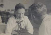 „Tatínek říkal: ‚Koukej do země, aby nás náhodou něco netrefilo, protože oni jak střílí, může se něco stát. Koukej do země!‘ Jenže já, kluk zvědavá, když letěl letoun Mustang, letěli tak dvacet metrů nad tratí a rozstříleli lokomotivu. Létali vždycky ve dvojicích. A já just koukal nahoru a poprvé jsem viděl černocha – krásné bílé zuby, černý obličej jak uhel. Viděl jsem, jak se zubí a směje. Směrem na Českou Třebovou zvedli letadla a zmizeli. Když jsme došli domů, maminka říkala: ‚Vždyť vás mohli zabít!‘ A tatínek povídal: ‚To víš, do chlapů se netrefí.‘ Pamatuji, že tatínek to bral vždycky s rezervou.“