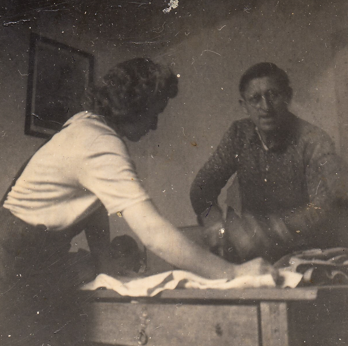 „Byl střelenej. Oni šli… byla nějaká mlha, dostali rozkaz od velitele, že musejí jít. Tak útočili, bez nějakých příprav dělostřeleckých. Karpaty byly obsazené, na Dukle, Němcema. Tak říkal, že byli vidět a že stříleli, že? Bez nějaké průpravy, mlha byla. No navyprávěl se opravdu hodně. Byl střelený do levé ruky, říkal, ano, a tou pravou si chtěl tu ruku nějak ovázat. Jak sáhl pro ten obvaz, tak ten loket… a tady mu ho prostřelili. Tou střelou dum-dum, která trhala. On tady nemá asi osm centimetrů kosti, proto nosí protézu. Bez protézy ta ruka není funkční.“ – „Takže on už se vlastně vrátil jako válečný invalida, by se dalo říci.“ – „Celý život, od osmnácti let. Bylo mu osmnáct, že.”