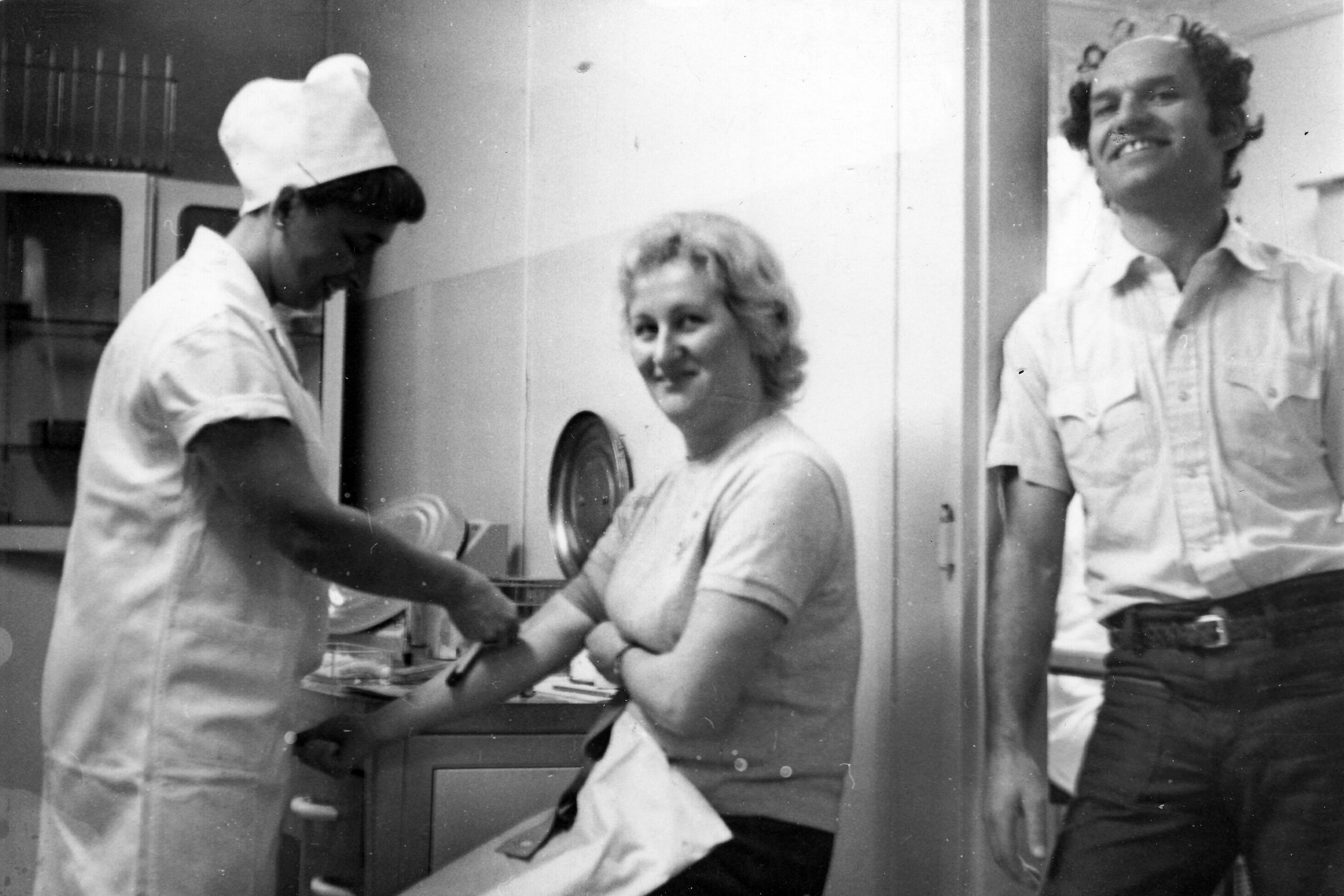 During the blood donation in the hospital in Děčín, c. 1978