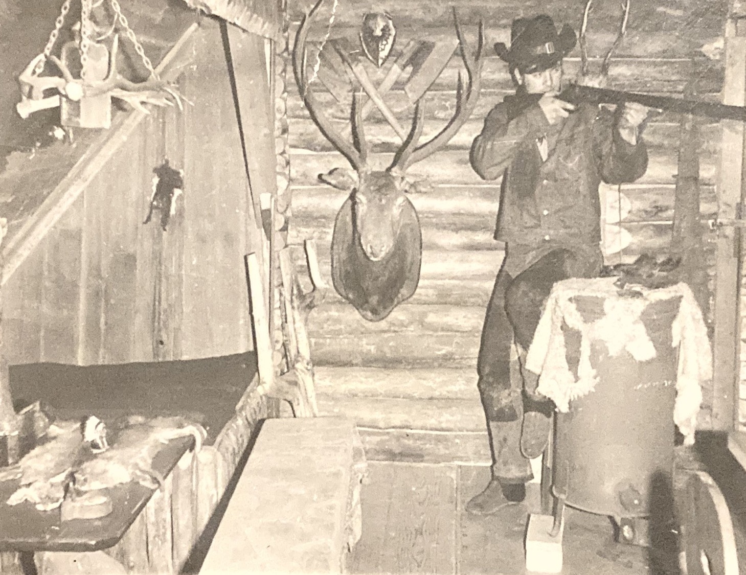 Interior view of the tramp hut, 1970s