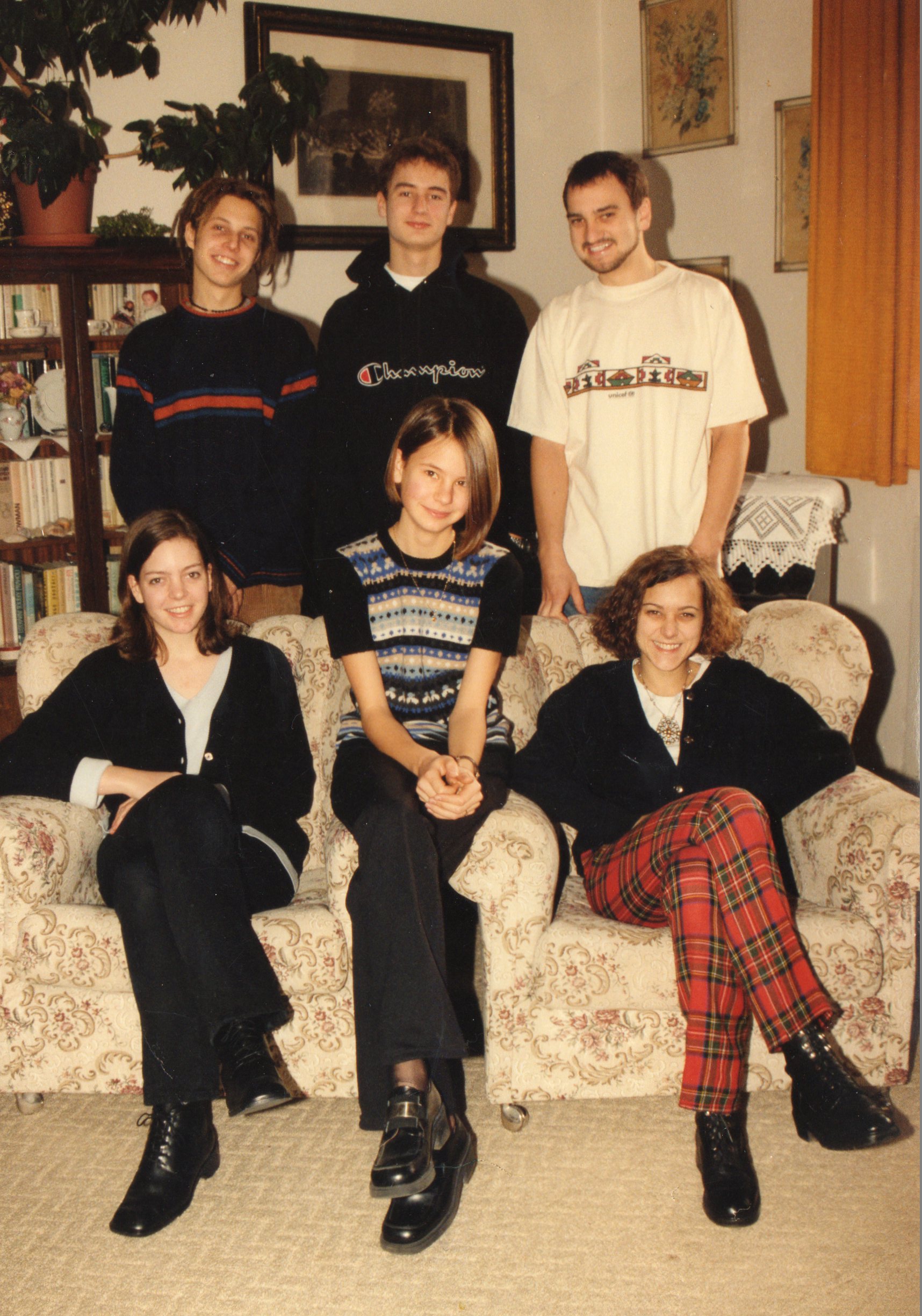 Petr Dujka's 50th birthday party, left to right: Petr Dujka, sister Monika, mother Eleonora, sister Markéta, brother Michal, 2001