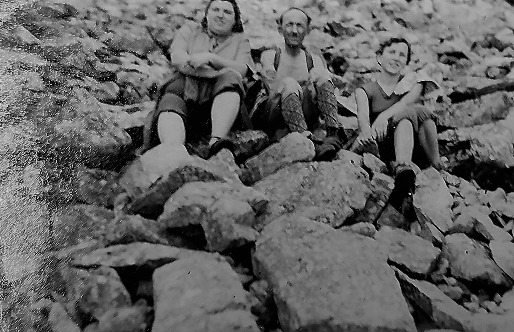 Waltraud and Ingeborg Görner with their mother Martha in the courtyard in Jiřetín pod Jedlovou