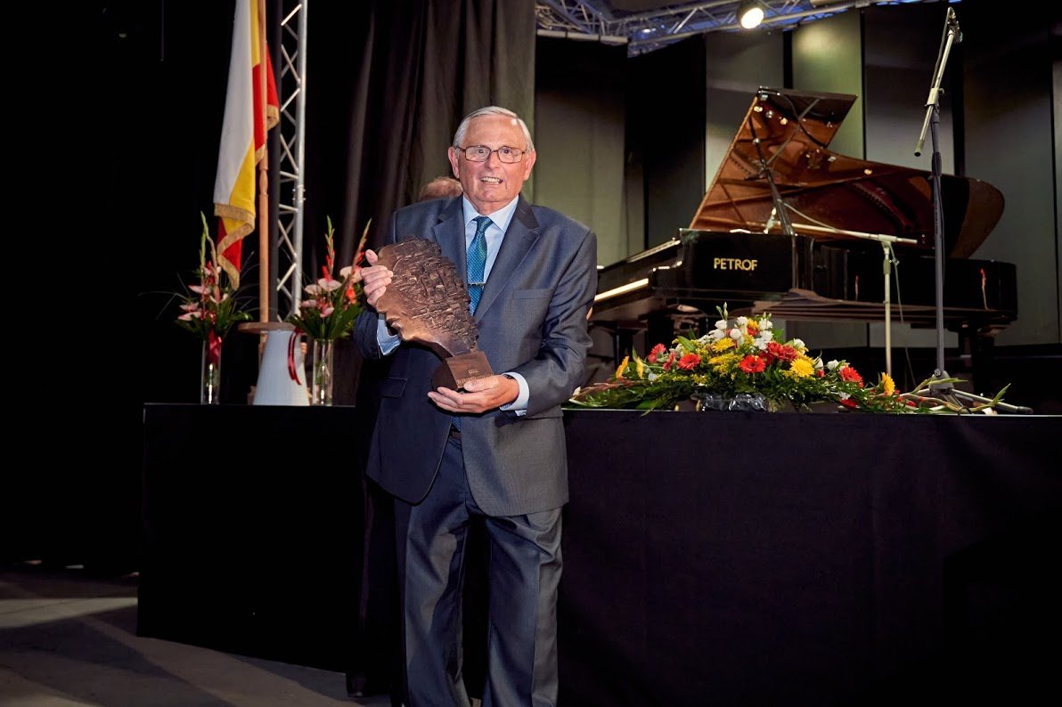 • Jan Petrof, 4. generace firmy Petrof, získal zpět rodinný majetek. Přebírá medaili Františka Ulricha 2.9. 2020