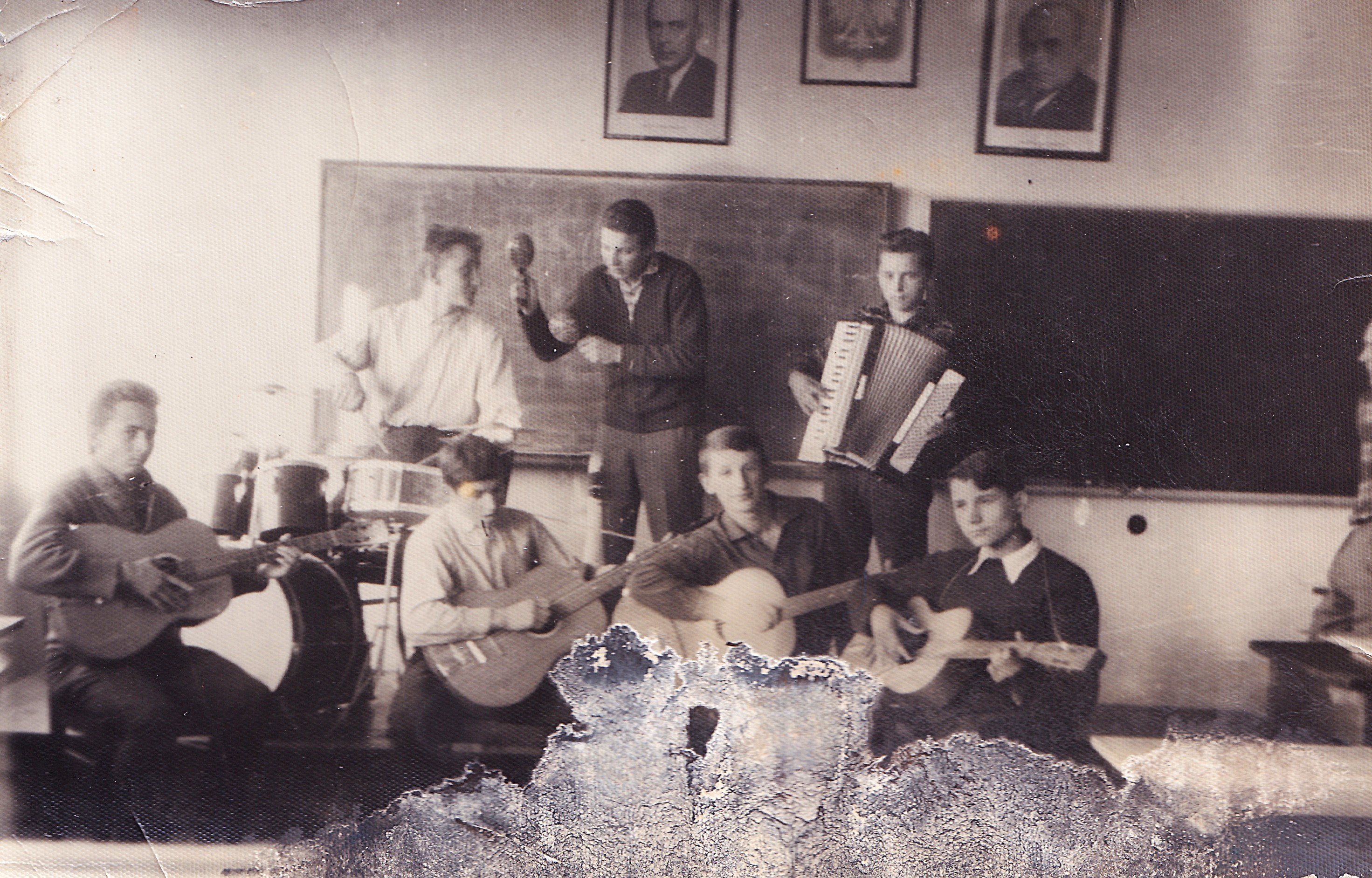 Band during studies at secondary technical school, Tadeusz Wilk on the bottom right with guitar