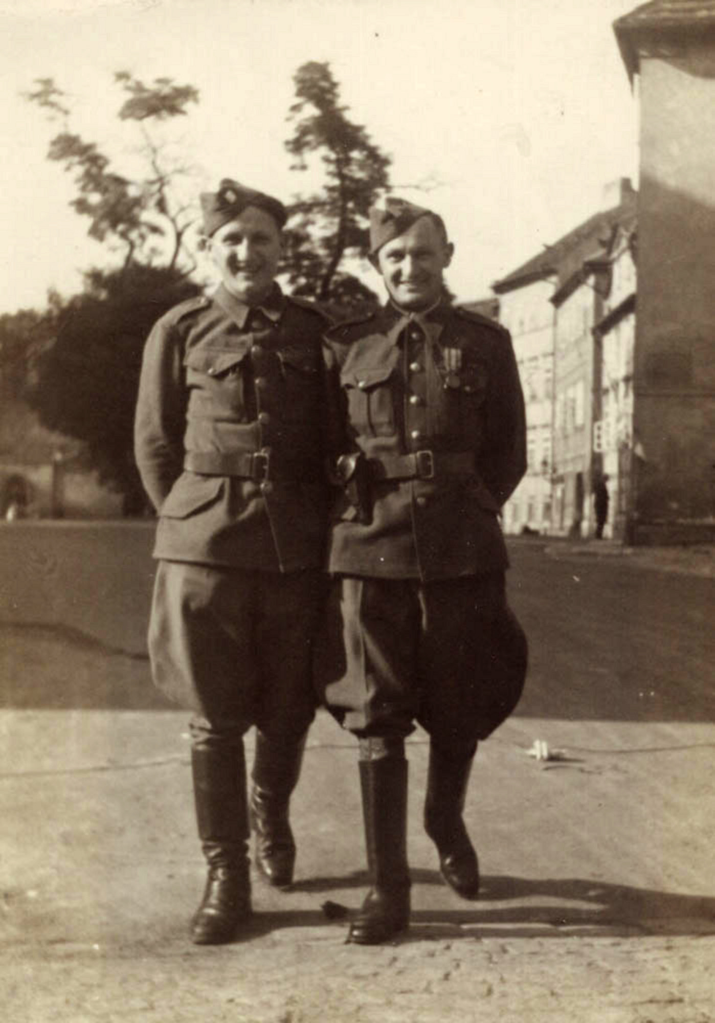 Rodina Kozákova za války v lese na polském území začátkem roku 1945 (zleva: otec František, matka Zdenka, nejstarší sestra Emilie, starší sestra Anastazie)