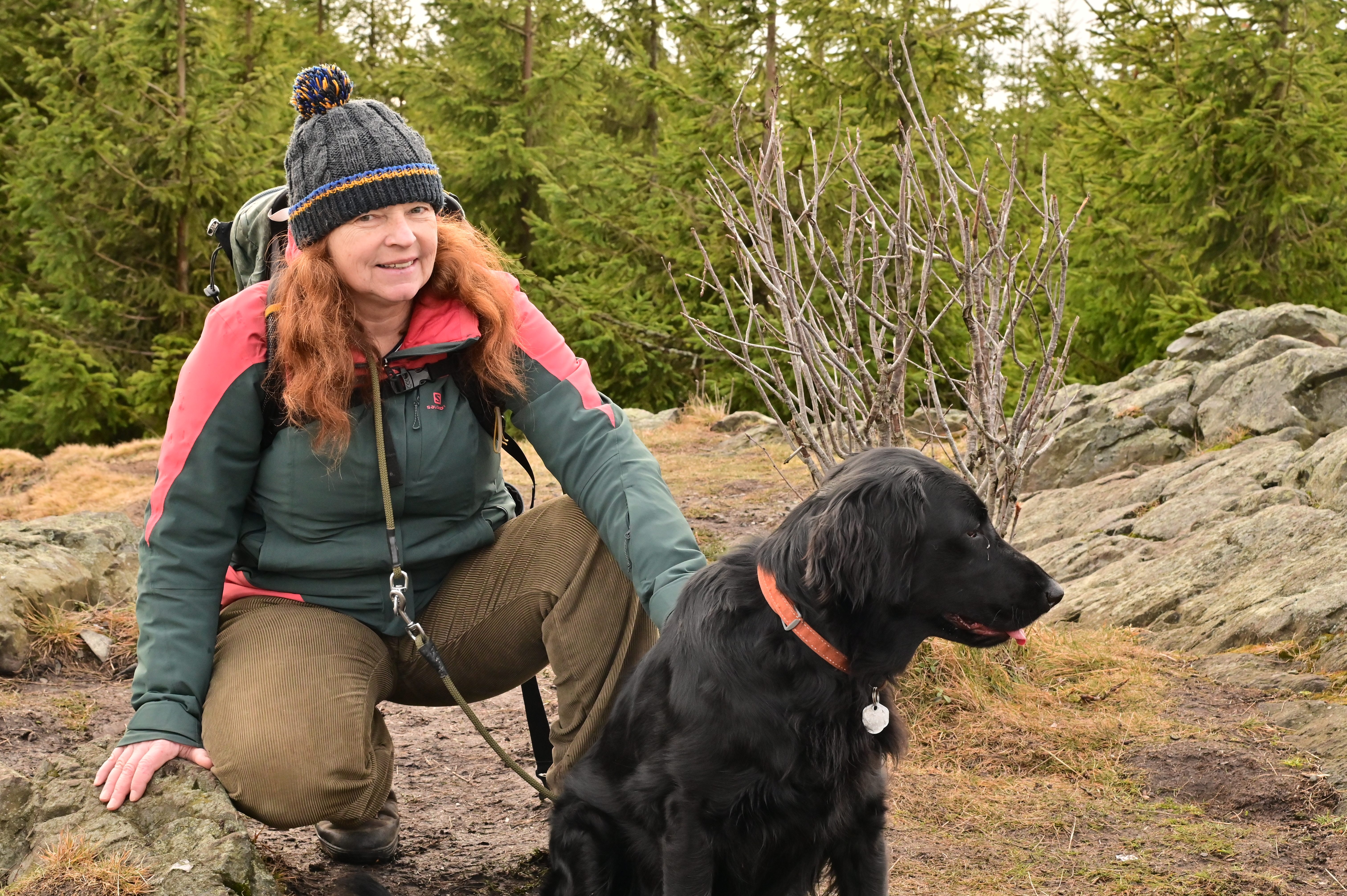 Pavla Fáberová, předsedkyně organizace Blízký soused, na výletě se svým psem Tessinkou.