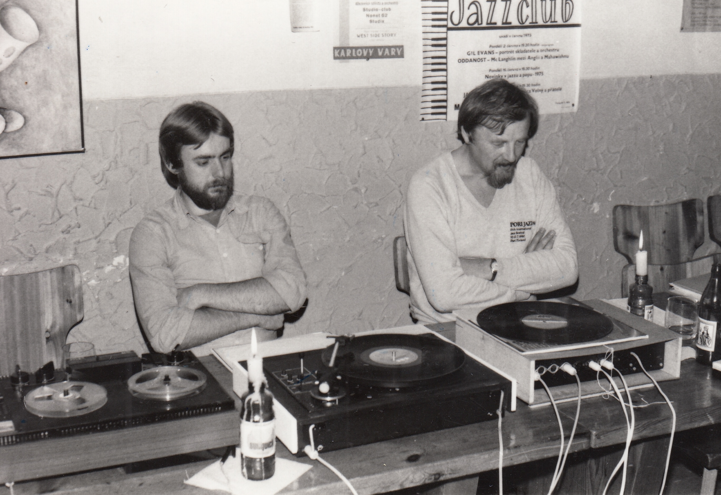 Milan Linhart (vlevo) s Karlem Koštejnem v karlovarském M-klubu, 70. léta