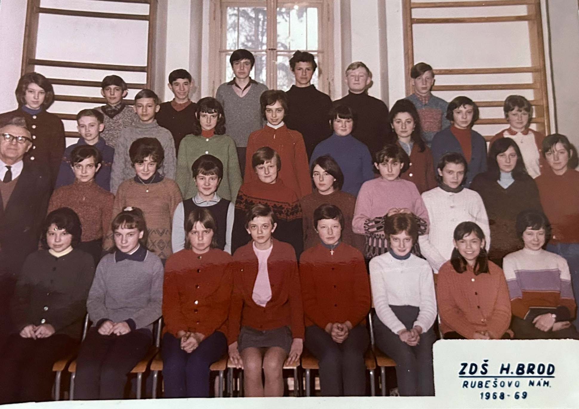 Jana Fischerová on a class photo at Rubešova Primary School