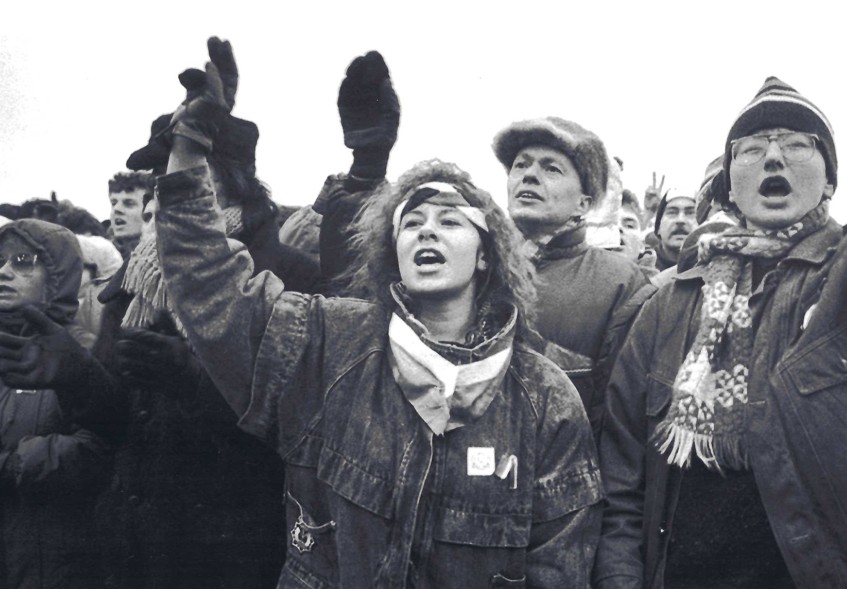 The witness (second right) during protests on the Letná Plain in November 1989