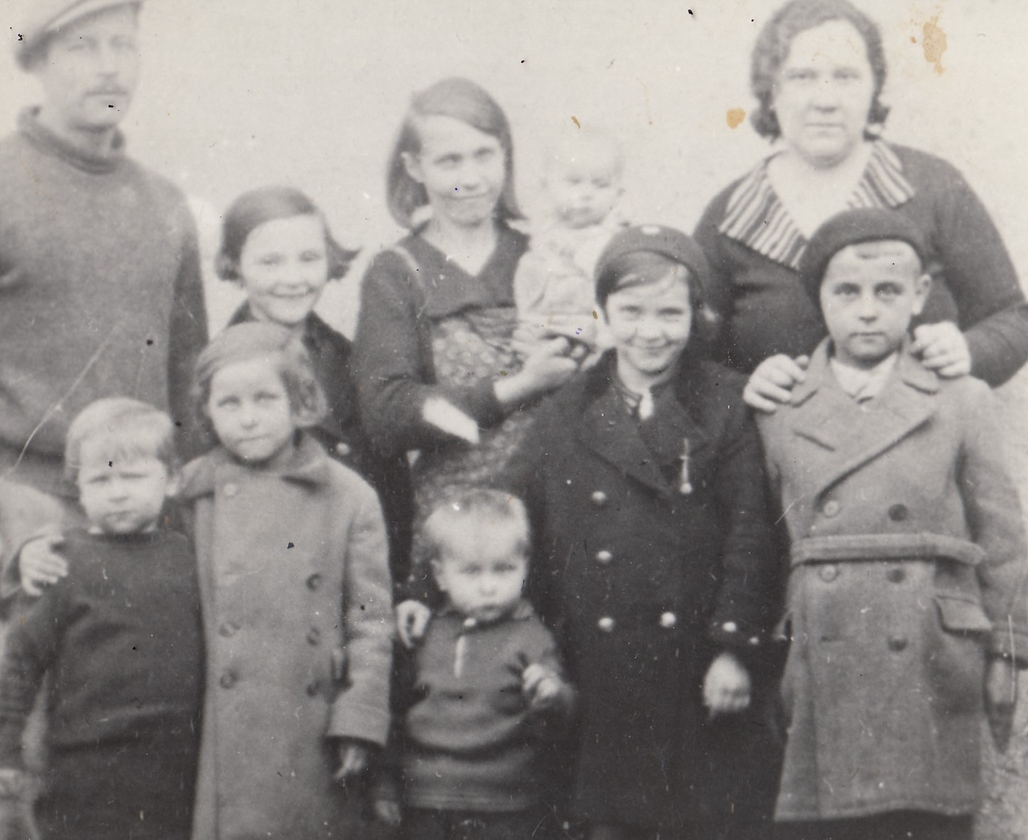 Pamětnice uprostřed u maminky, vlevo její otec, vpravo teta, dole otcovi sourozenci, 1934