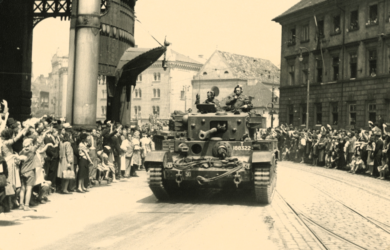 Vojenská přehlídka v Praze 30. května 1945. Slavnostní vojenská přehlídka Československé samostatné obrněné brigády. Na jedné z největších vojenských přehlídek se Pražanům představili vojáci, kteří bojovali na západní frontě. Mezi nimi i otec pamětníka Karel Škarka