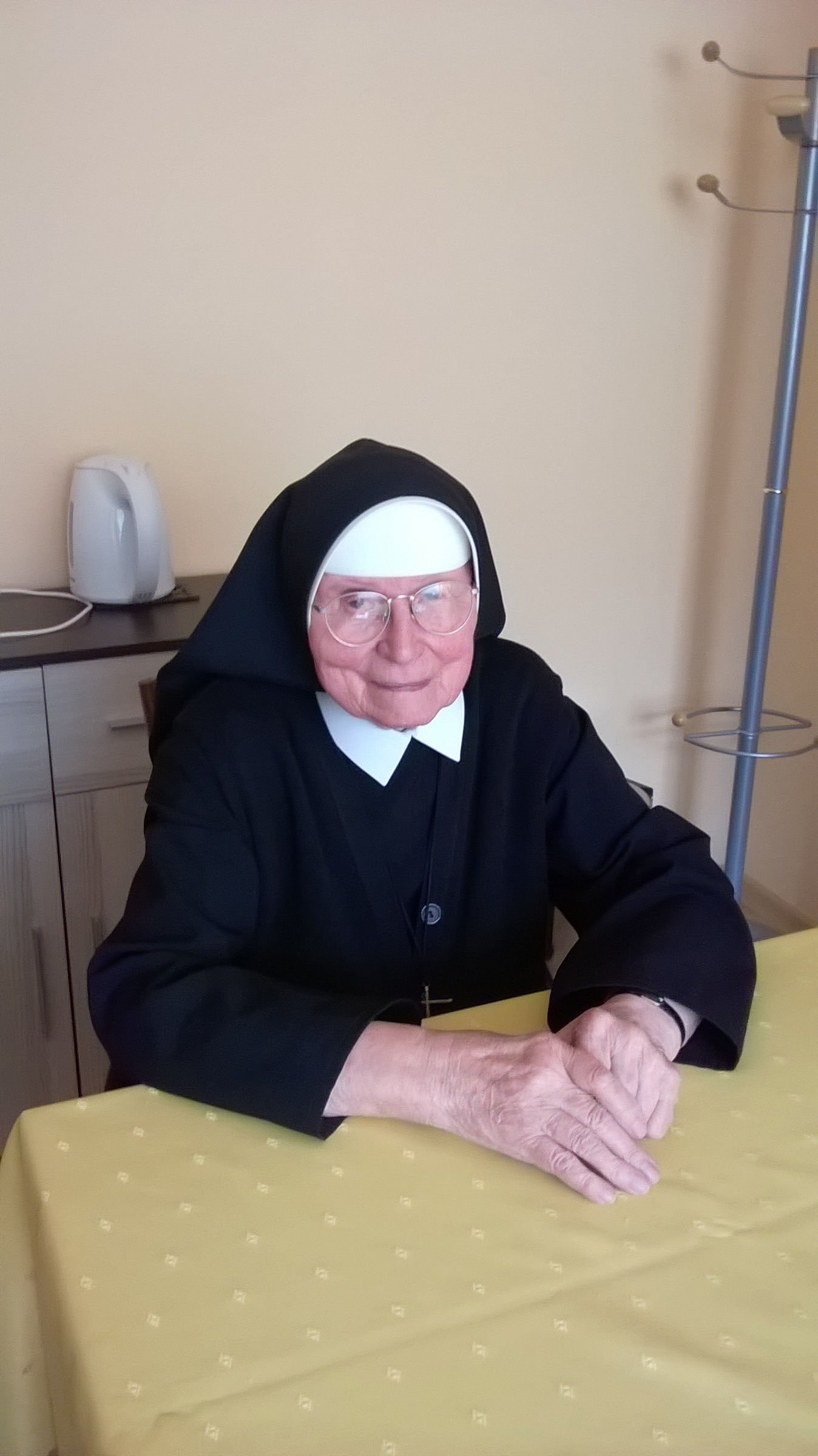 „Prišli Rusi v noci, naozaj už boli v našej nemocnici. Všetky sme dostali varovanie dávať si pozor. Išla som so sestrou predstavenou, on tam bol, uštipol ma ponad ňu a pýta sa ma: ,Kde máš človeka?' Tak som ukázala smerom na kríž so slovami: ,To je náš človek.' Tak potom vedel, že nemôže robiť špásy."