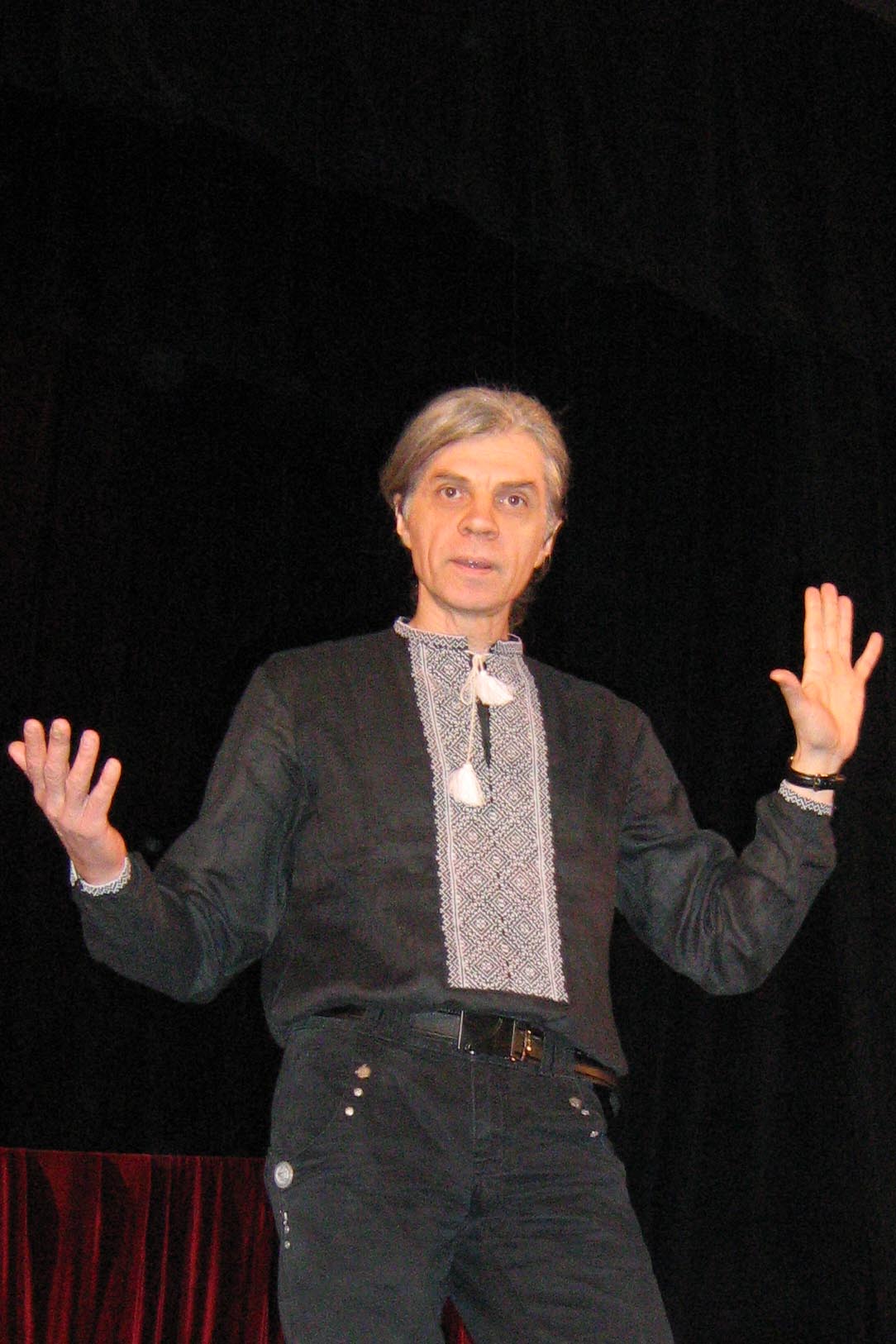 «Мені основна подія, яка відбулася, я про неї сказав, — це розвал [Радянського] Союзу. Це було основне. Тоді все почалося. В том числі і на Україні, і де завгодно. Тому саме подія [19]91 року. Вона сприймалася якби само собою, спокійно, я так її сприймав. Не було такого “вау”, що воно оце, так було правильно, тобто послідовно. <…> Ми продовжували так, як ми і починали в кінці [19]80-х, продовжували так само працювати. Це було так в Донецьку. Чому так було? Це було неправильно, з одного боку. З якого боку, я вважаю зараз, це було неправильно? Якщо б ми набули незалежність в [19]91 році, якби більше держава зі свого боку і просто з усіх боків… [Потрібно було] займатися українською культурою, більше в цей регіон [вкладати], якби такий десант зробити культурний. Такого не відчувалося там, зовсім такого не було. Просто ми продовжували там російський репертуар, класичний російський, все як завжди, нічого нового. От такої події не було. Для мене особиста подія тих років, 90-х років — це я сам, знову, це не зверху, а я сам. Я поїхав до Львова». — «В якому році?» — «В середині [19]90-х я поїхав до Львова. <…> Там був фестиваль театральний і просто середовище, місце, місто. Вся ця декорація, яку я зараз… в якій я влаштовую себе, свої вистави, життя. <…> Я знаю, але це ж я виїхав, ще декілька виїхало. А основна маса? Вона нічого цього [не знає]… вона там сидить… <…> Будемо чесними, рідко хто до Львова доїжджав, до Києва трошки, а до Львова?.. Тому я знав. <…> Хоча я був на російській культурі вихований, в мене тут запало, що я все ж таки… Львів — це Європа… Знаєте, я от як [Ілля] Рєпін. Кажуть, Рєпін був з України. Знаєте, що Рєпін — він російський? Вважається російським художником, що написав — передвижник — багато відомих картин. Але в нього були і “Запорожці [пишуть листа турецькому султанові]” — це відома картина. Але потім він написав багато, я так потім дізнався, багато картин українських, а про це нічого не говориться. “Гопак” його останній, і до того в нього багато картин було таких українських. Він вже наприкінці життя вважав себе українцем. Відділився — жив у Фінляндії, в Куоккалі, йому там було легше. І він, в принципі, український художник. І я просто… Але до мене, як до Рєпіна… Може, до [Іллі] Рєпіна раніше? До мене вже в [20]00-х почало доходити, що треба щось з цим регіоном [робити]… Правда, вже пізно. Але ніколи не пізно, все одно. Тому подія [20]00-х, яка мене на це трошки [наштовхнула], ще більше я став думати на цю тему, — це була революція. Оранжева революція у 2004-му. Я був в Києві тоді, до речі. На мене вона, звичайно, справила враження більше, ніж будь-яка подія... Це просто бомба. <…> Я думаю, що таких революцій і мало було, або я не знаю таких революцій… Ти ж не просто знаєш про це. Коли я там вчився — я режисурою тоді там займався, закінчував режисуру, — я там жив… Така безкровна революція, можна сказати, так її можна назвати, зовсім безкровна революція... В яку не вірять і досі. Не вірять, може, інші народи, що так може бути. І Росія, вони інші за світоглядом, за світобаченням інші, зовсім інші. Вони не розуміють, що це може бути. Але це було, було не страшно там ніде — вночі, не вночі ходити по вулицях. Тобто можна було куди завгодно зайти. Можна було зайти, двері відкриті всі були. В любий театр я тоді… просто заходив в театр, двері відкриті, і дивився вистави».